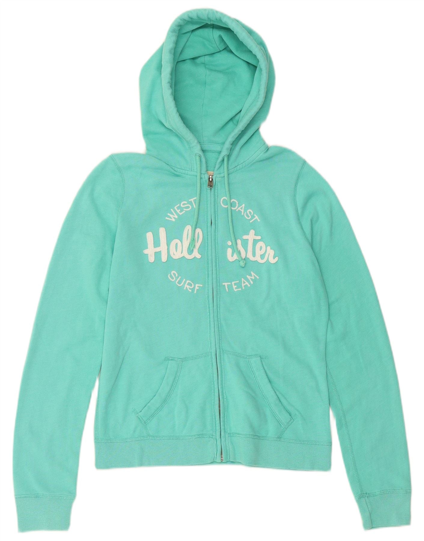 HOLLISTER Женский свитер с капюшоном на молнии с графическим рисунком UK 14, средний бирюзовый хлопок