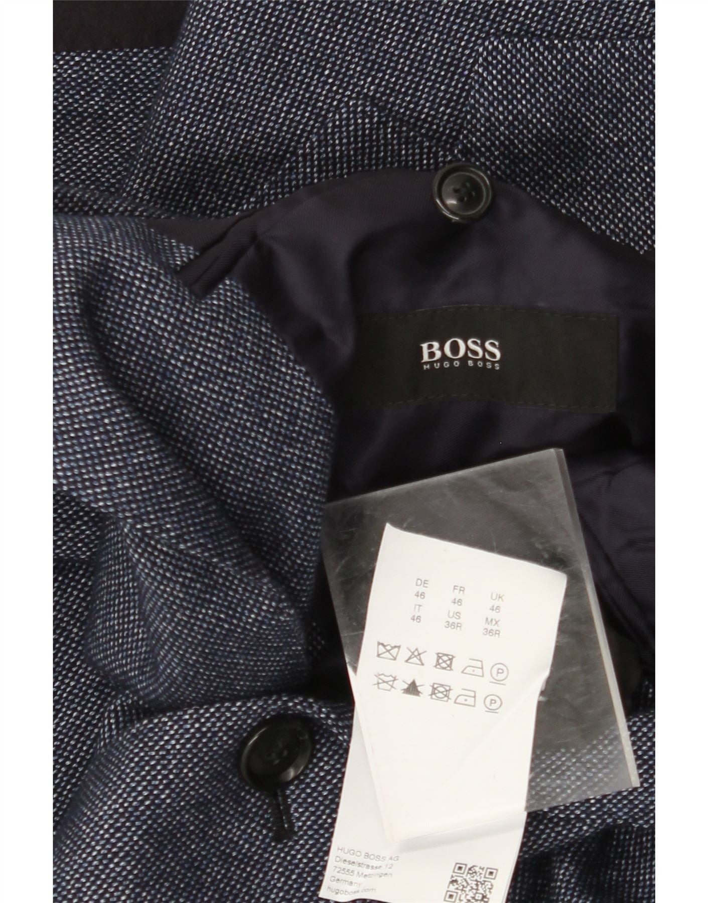 Мужской пиджак на 2 пуговицах HUGO BOSS, цвет EU 46, маленький, темно-синий, шерсть