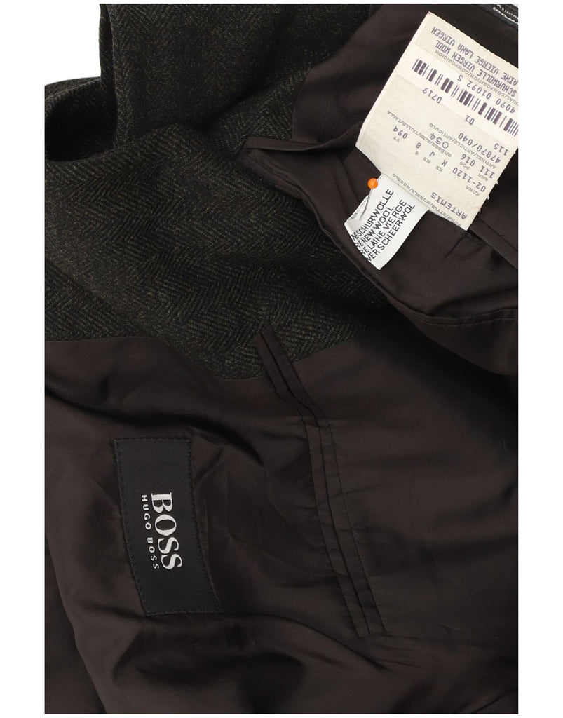 Мужской пиджак на 3 пуговицах HUGO BOSS EU 54 2XL хаки с узором «елочка»