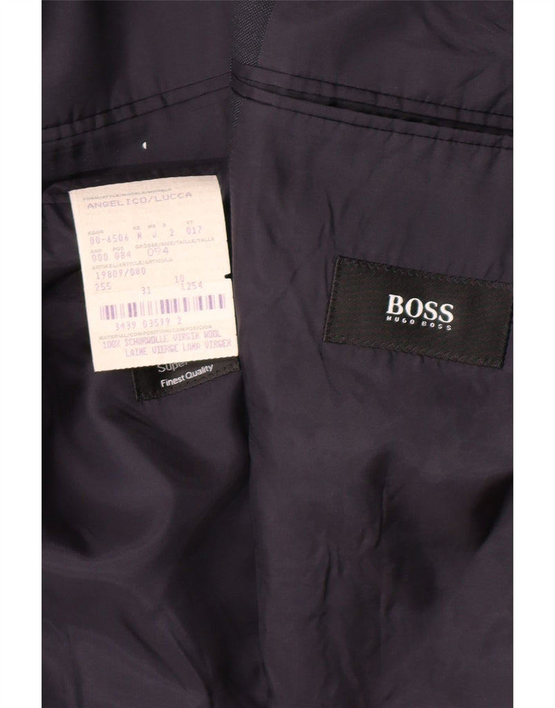 HUGO BOSS Mens 3 Button Blazer Jacket Size 94 Medium Navy Blue Virgin Wool