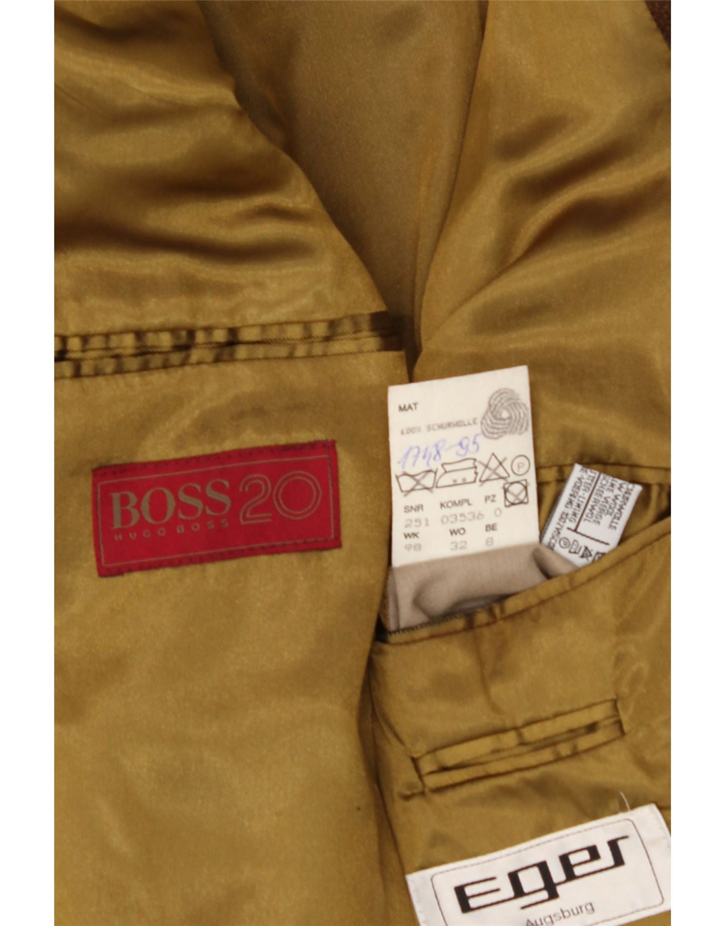 HUGO BOSS Mens 3 Button Blazer Jacket Size 98 Large Brown Virgin Wool