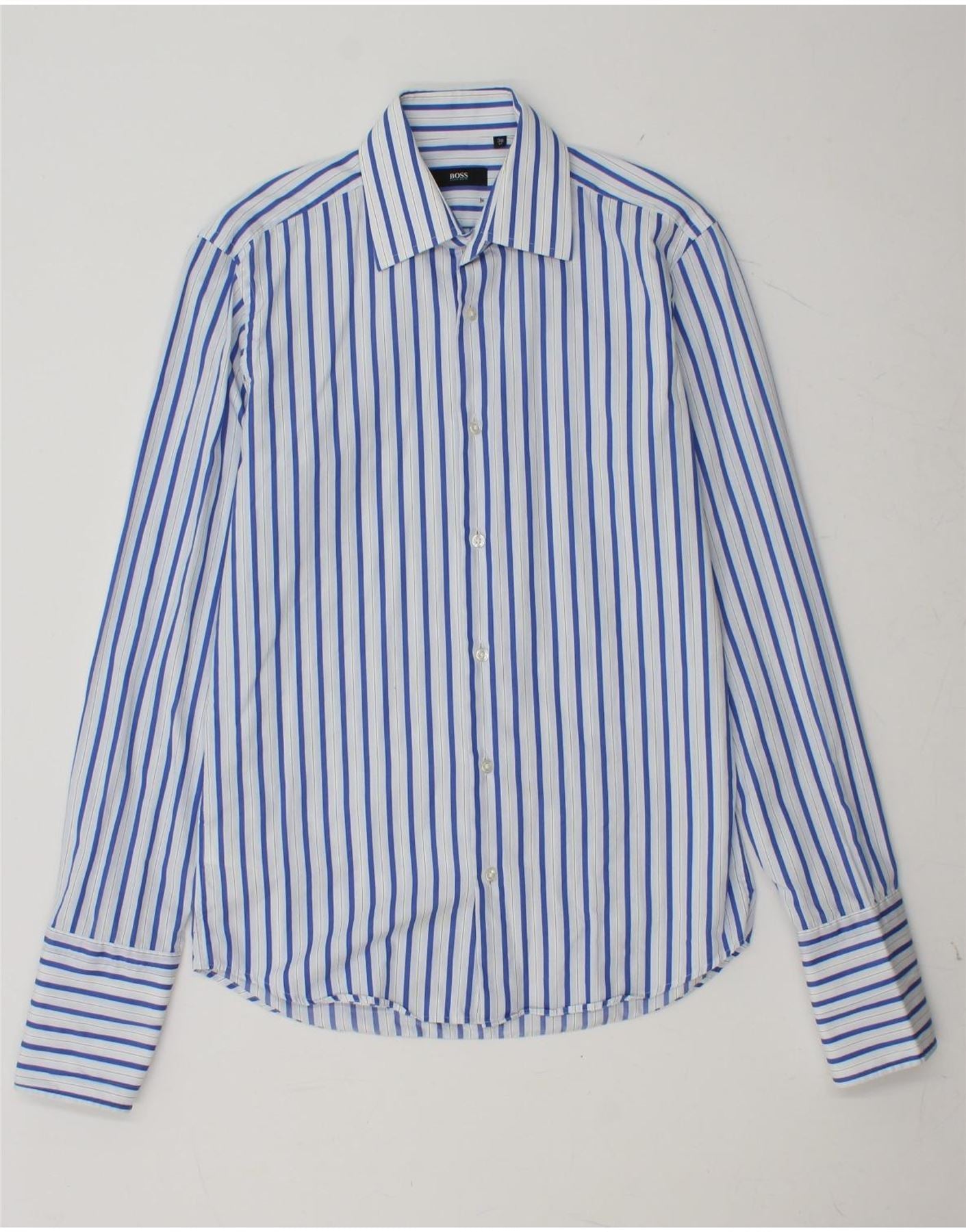 Мужская деловая рубашка HUGO BOSS, размер 38 15, средний размер, синяя полоска, хлопок