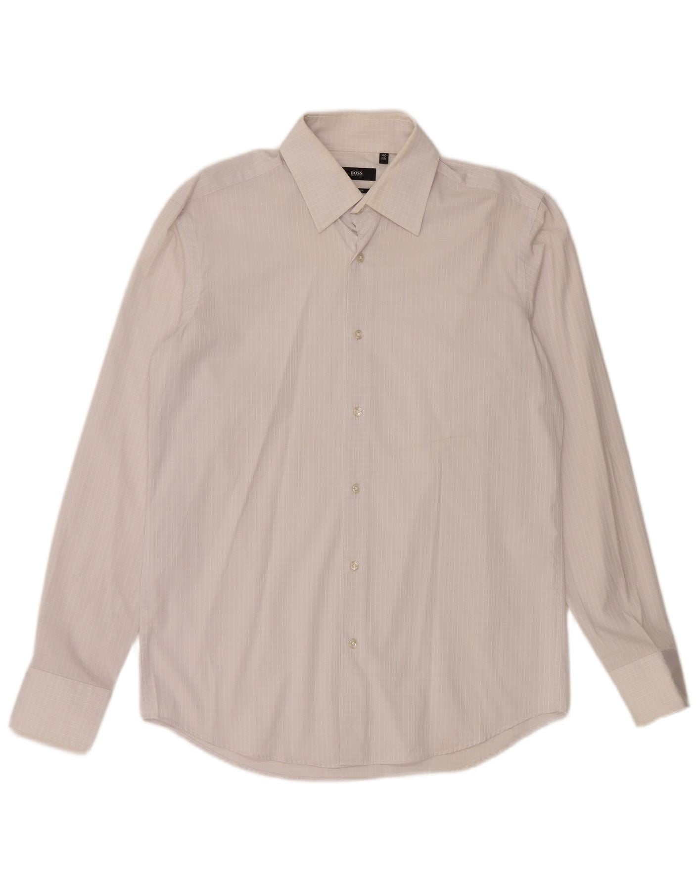 Мужская рубашка стандартного кроя HUGO BOSS, размер 40, 15, 3/4, средняя, белая в клетку