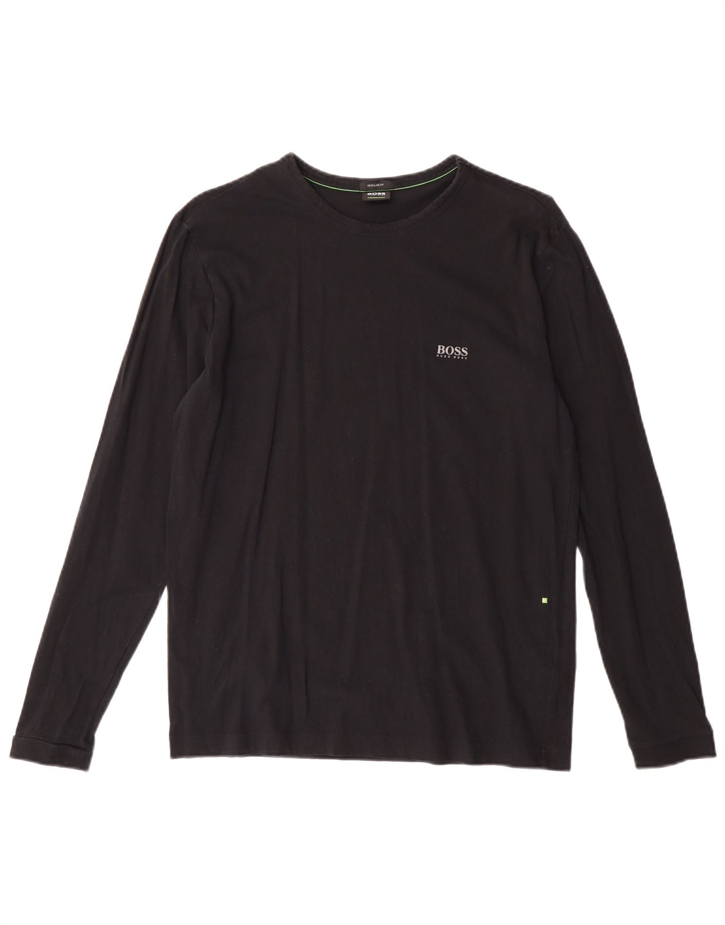 Мужской топ обычного кроя HUGO BOSS с длинным рукавом, маленький черный хлопок