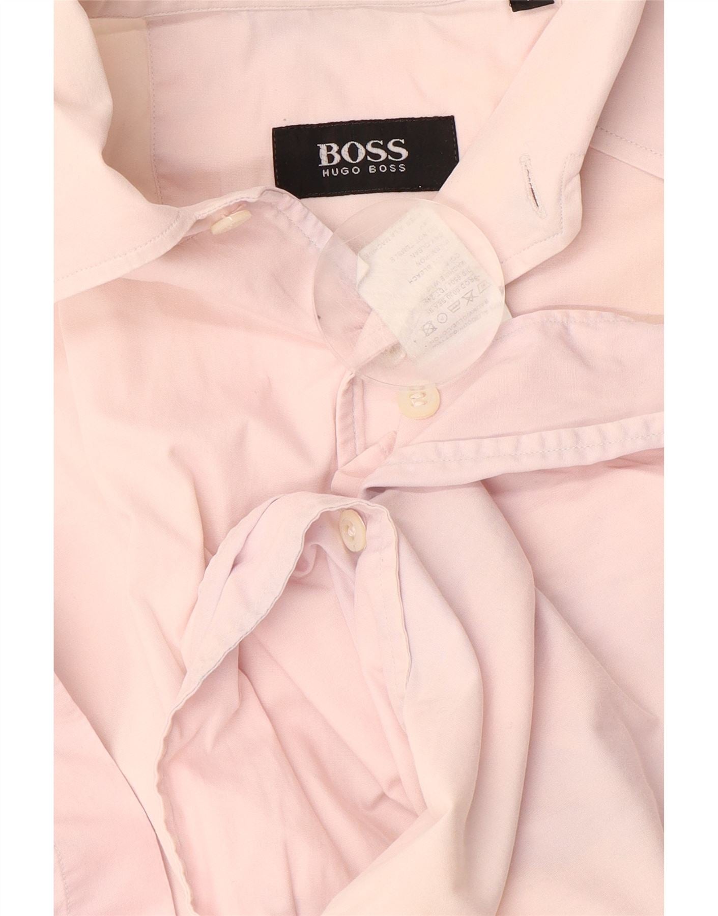 Мужская рубашка с коротким рукавом HUGO BOSS из хлопка среднего розового цвета