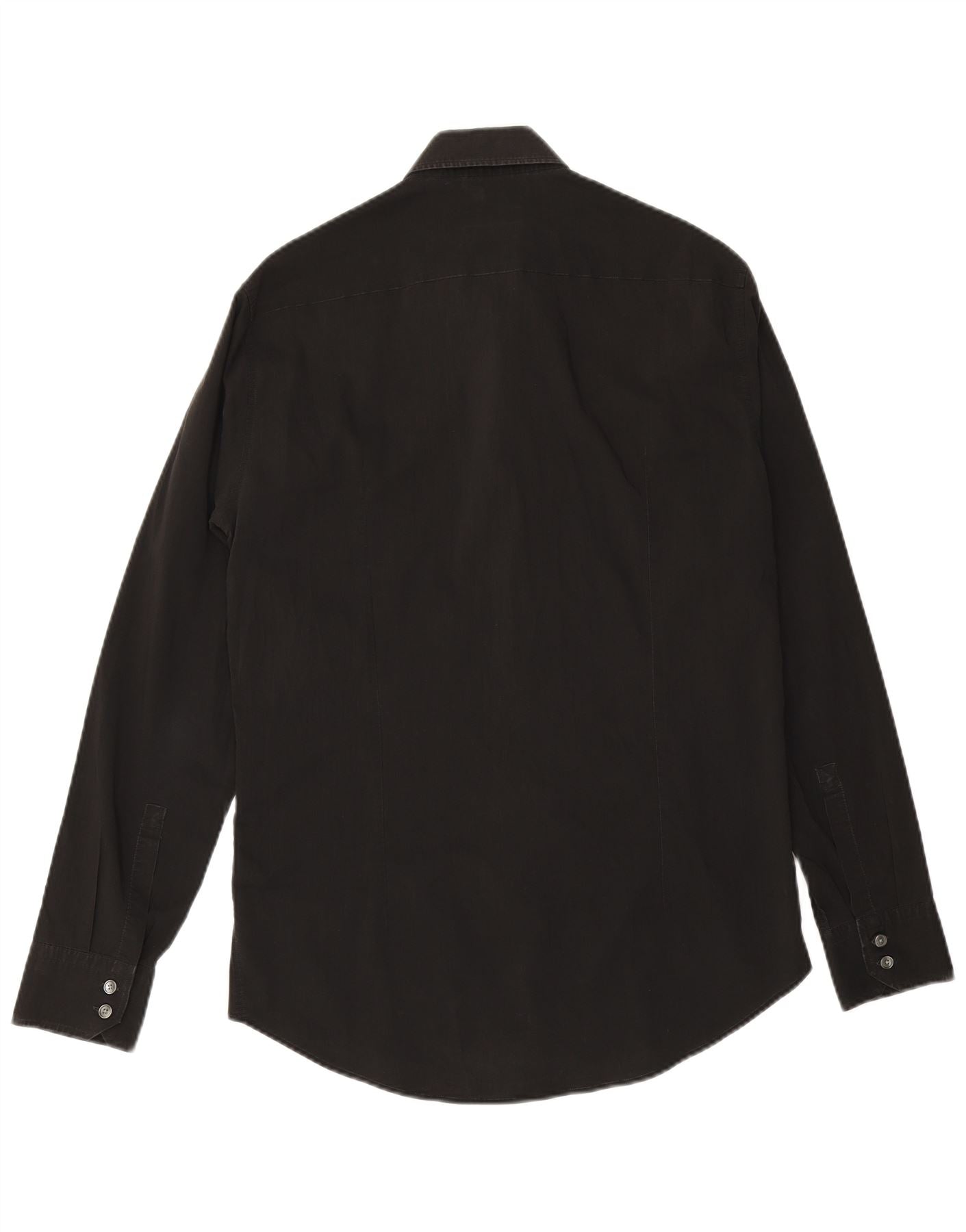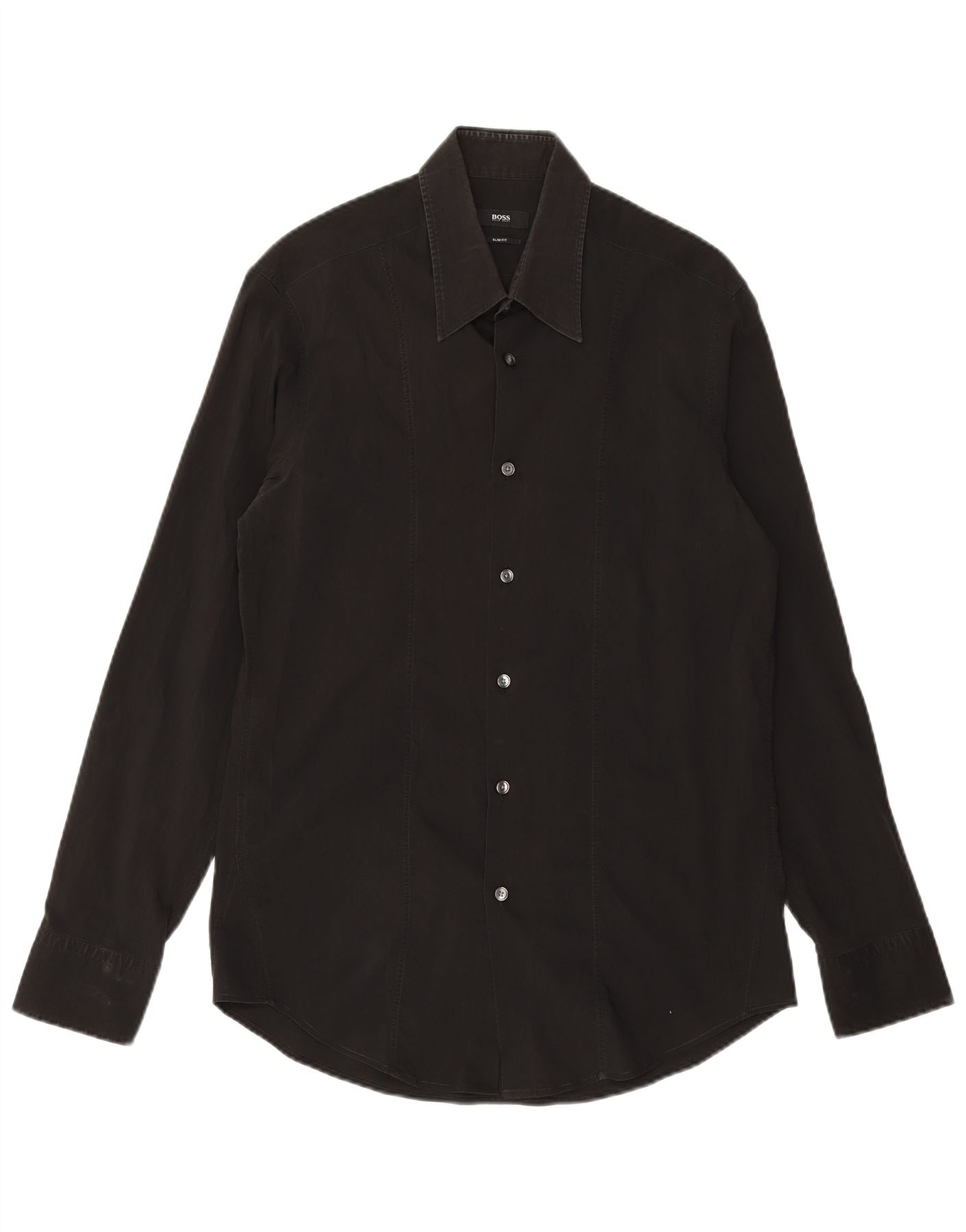 Мужская рубашка приталенного кроя HUGO BOSS, размер 41/42, большая, черная, хлопок