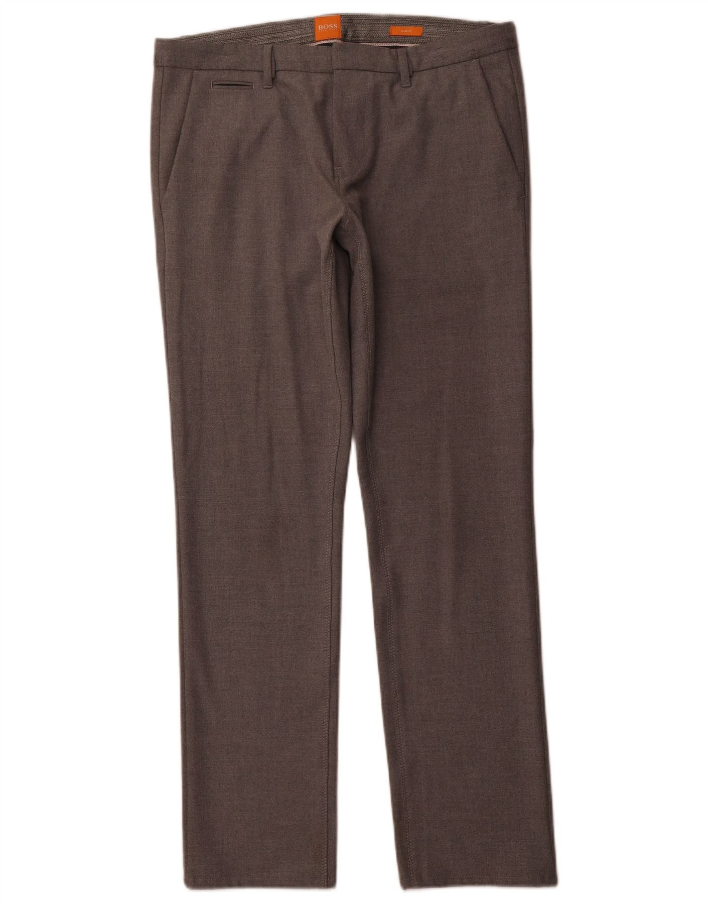 Мужские костюмные брюки узкого кроя HUGO BOSS W33 L32, серый полиэстер