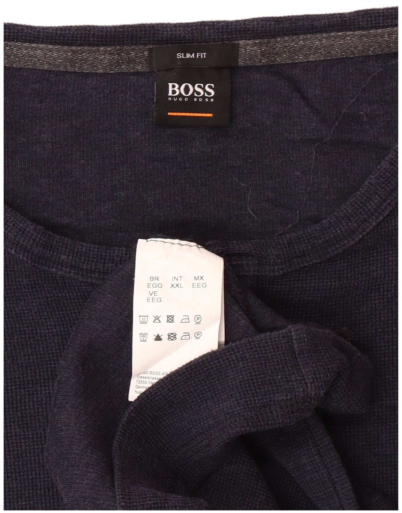 Мужской приталенный топ HUGO BOSS с длинным рукавом 2XL, темно-синий, хлопок