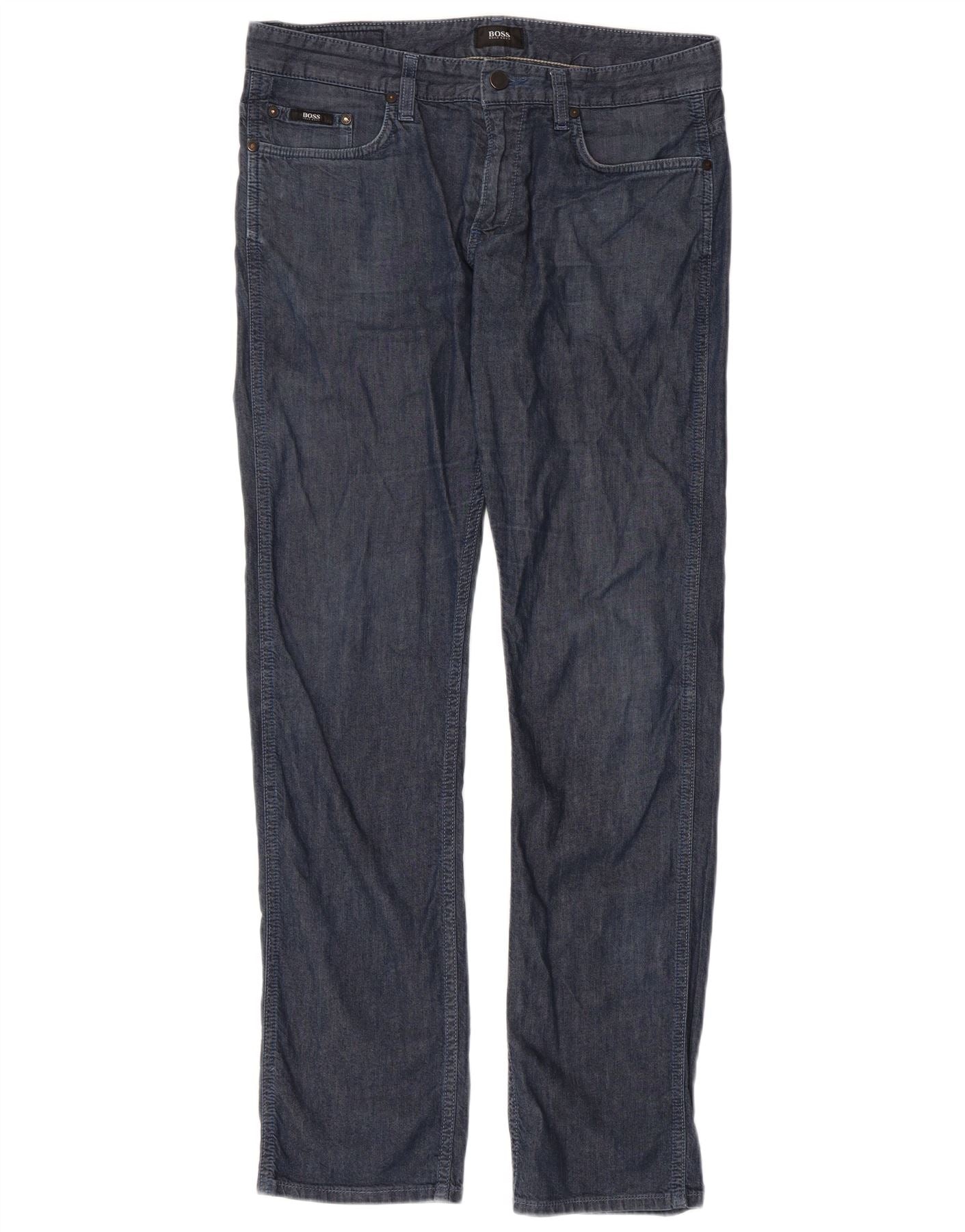 Мужские прямые брюки-чиносы HUGO BOSS W34 L32 темно-синие, хлопок