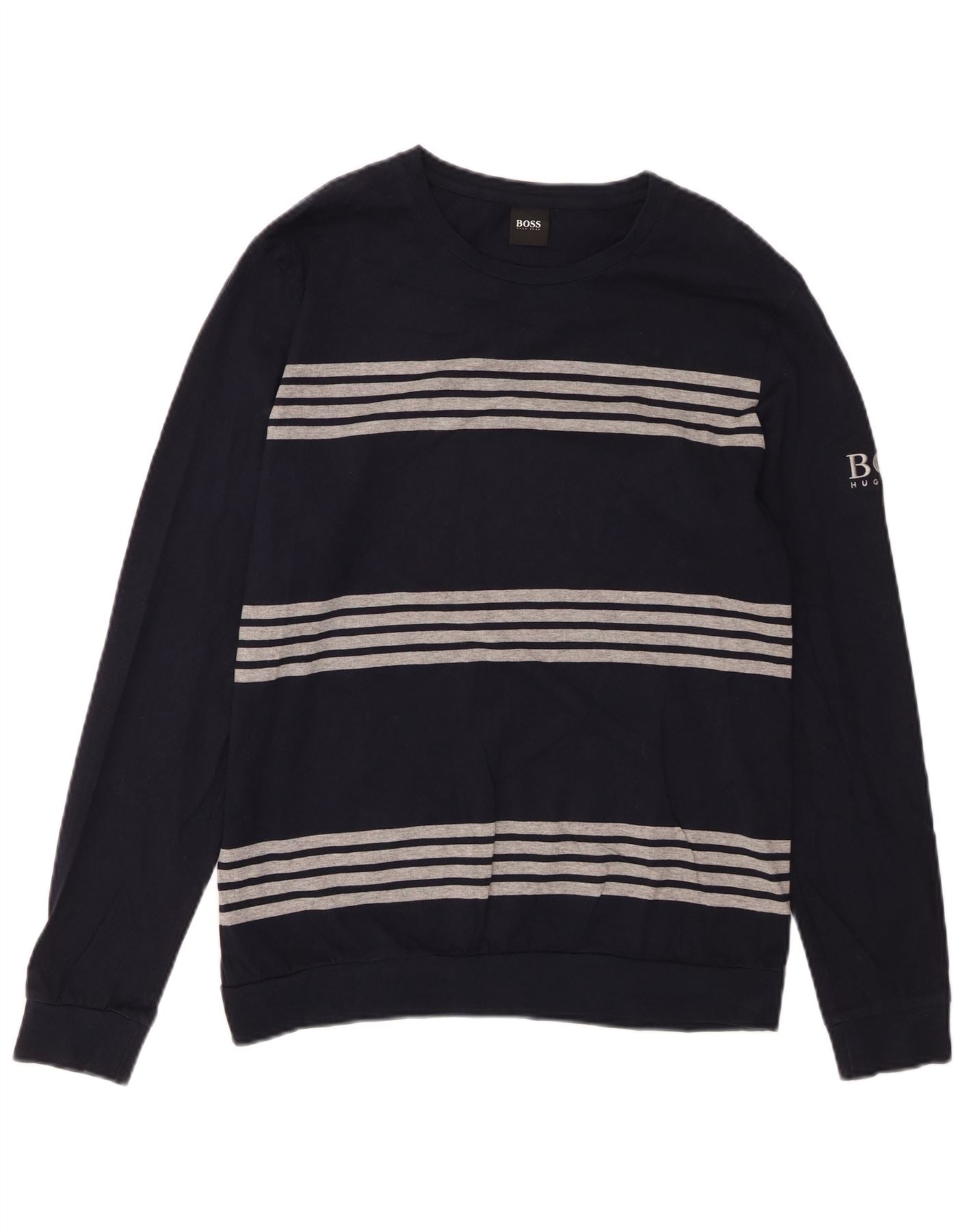 Мужской топ HUGO BOSS с длинным рукавом, средний темно-синий в полоску, хлопок