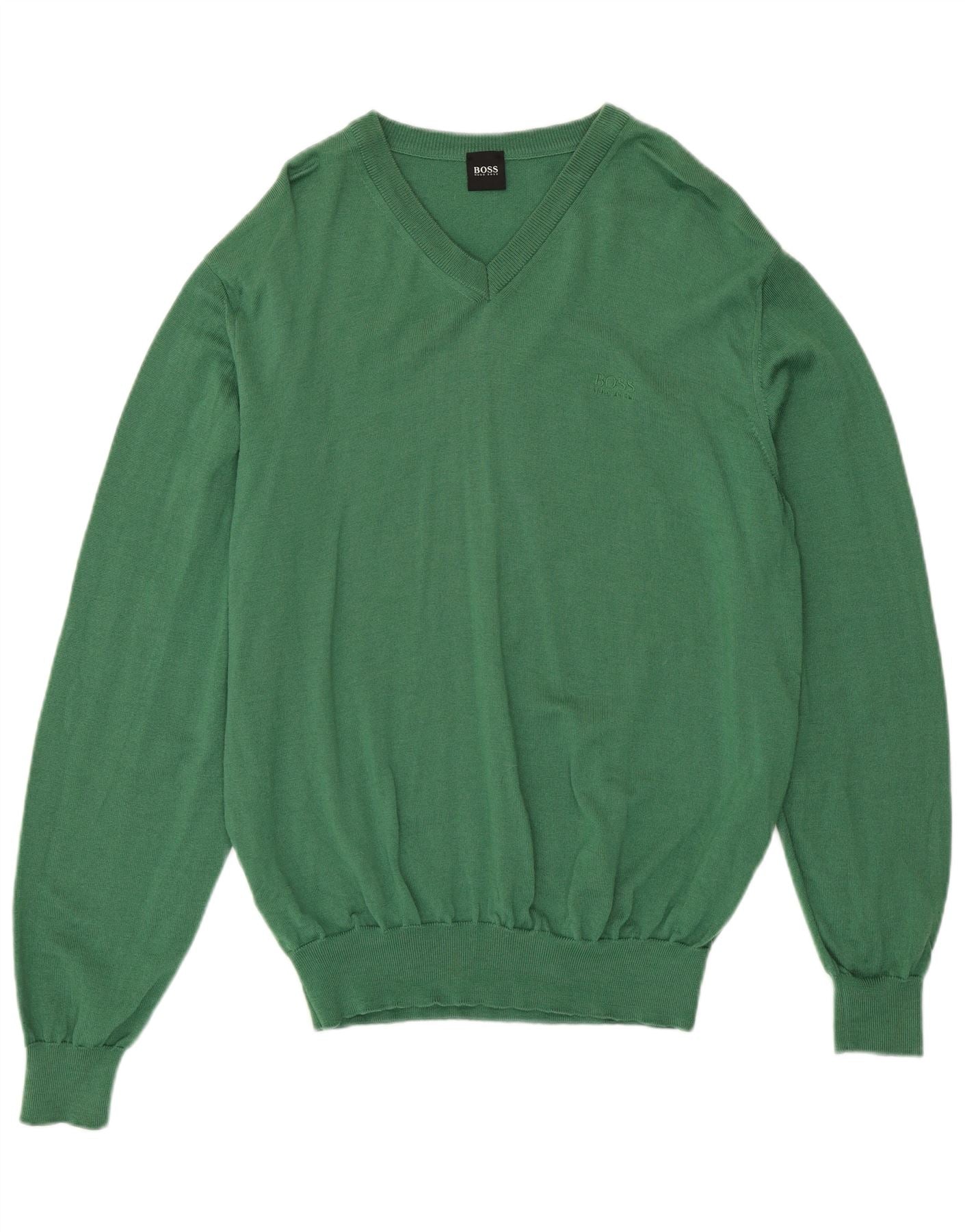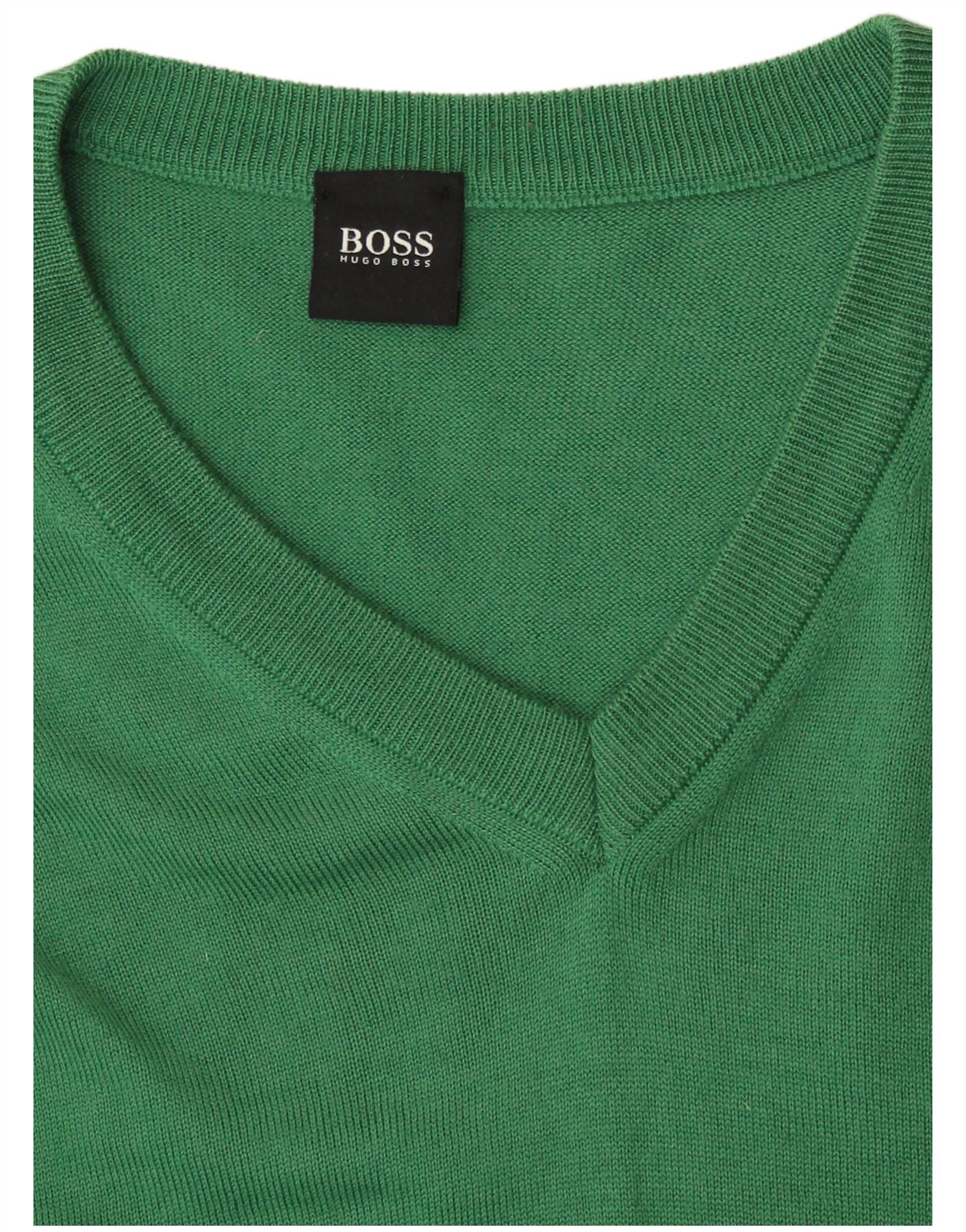 Мужской джемпер с v-образным вырезом HUGO BOSS, средний зеленый цвет из мериносовой шерсти
