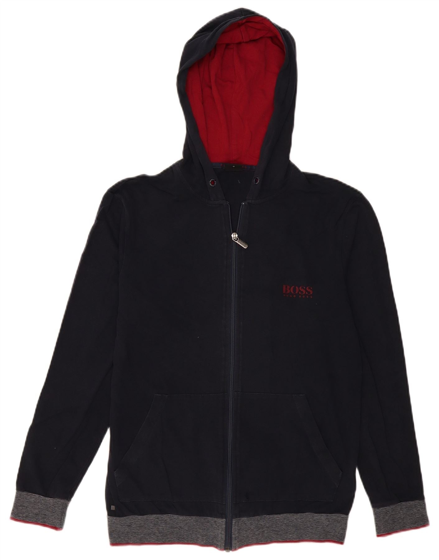 Мужской свитер с капюшоном на молнии HUGO BOSS, маленький, темно-синий, хлопок