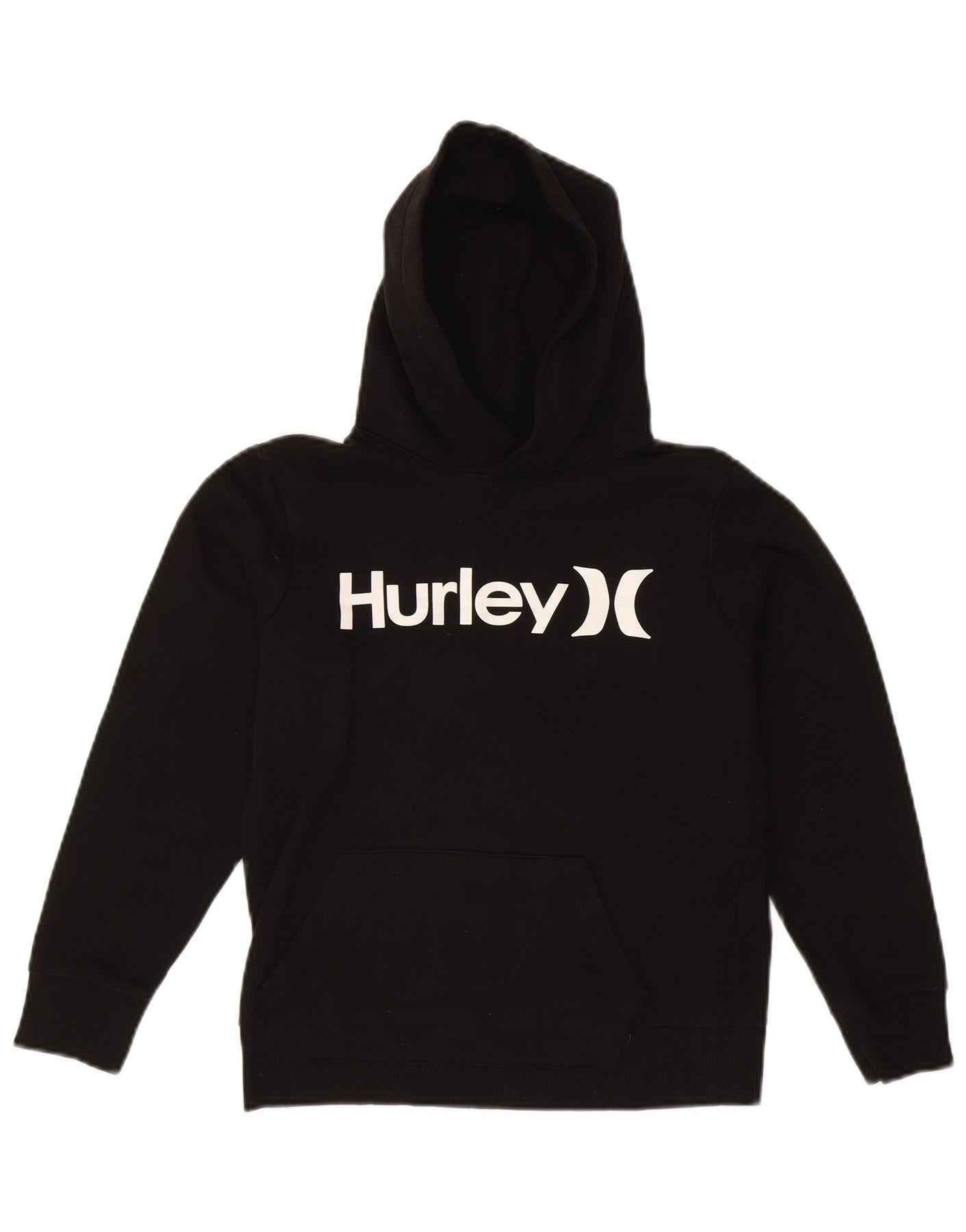 HURLEY Boys Graphic Hoodie Jumper 10-11 Years Medium Black Cotton