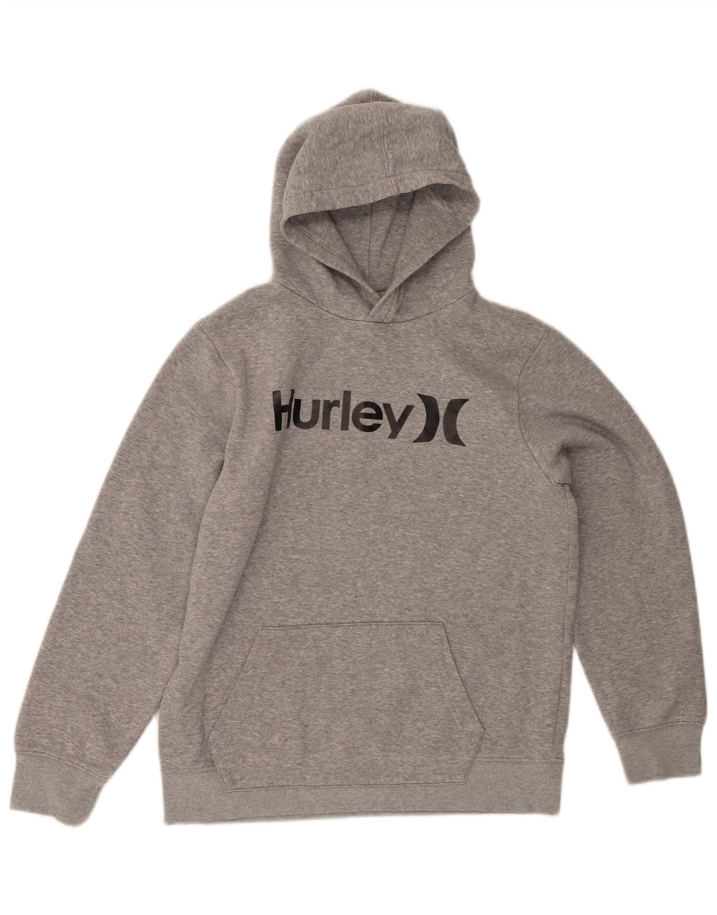 HURLEY Boys Graphic Hoodie Jumper 15-16 Years Grey Flecked Cotton
