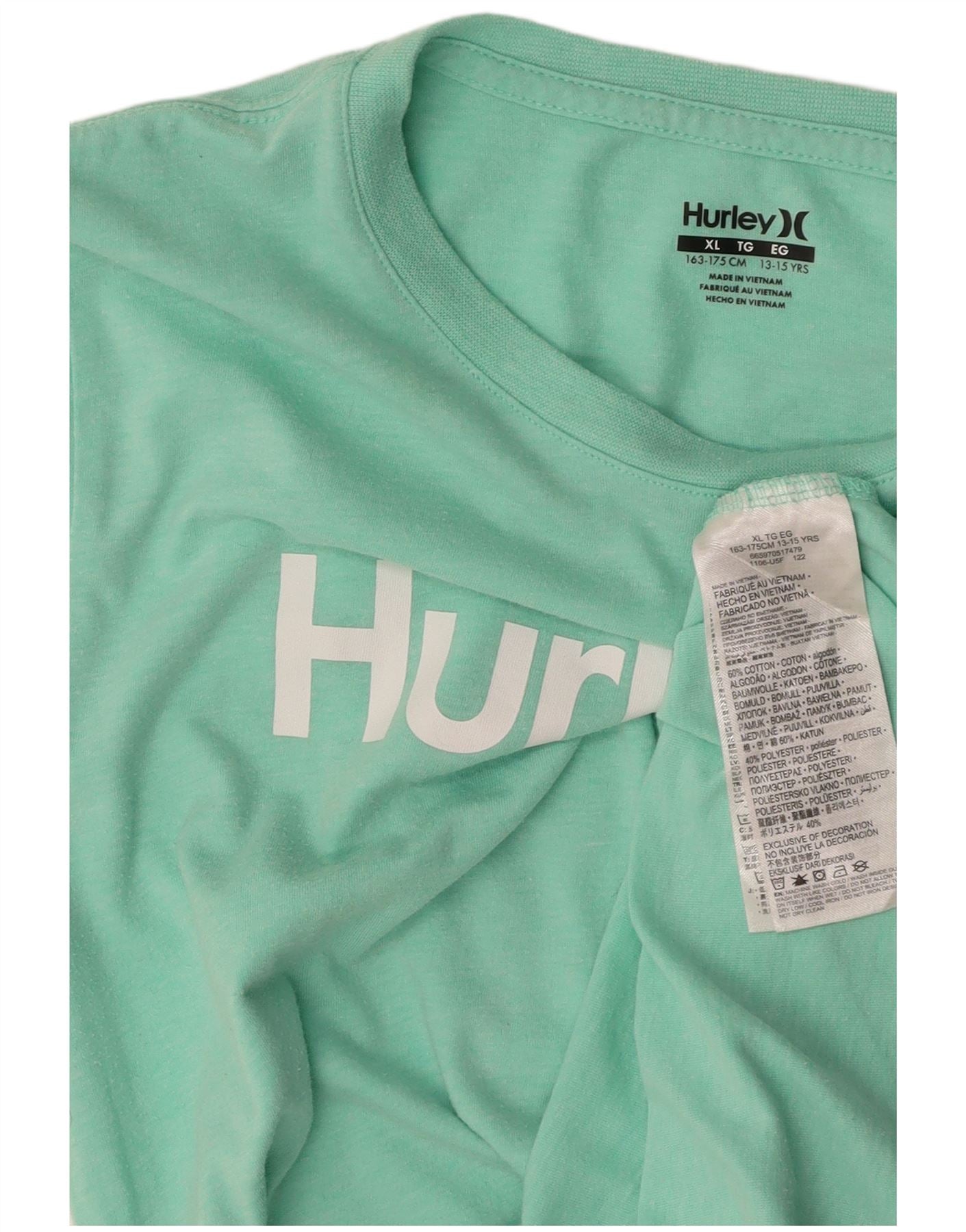 Футболка с рисунком HURLEY для мальчиков, топ 13–14 лет, зеленый хлопок, размер XL