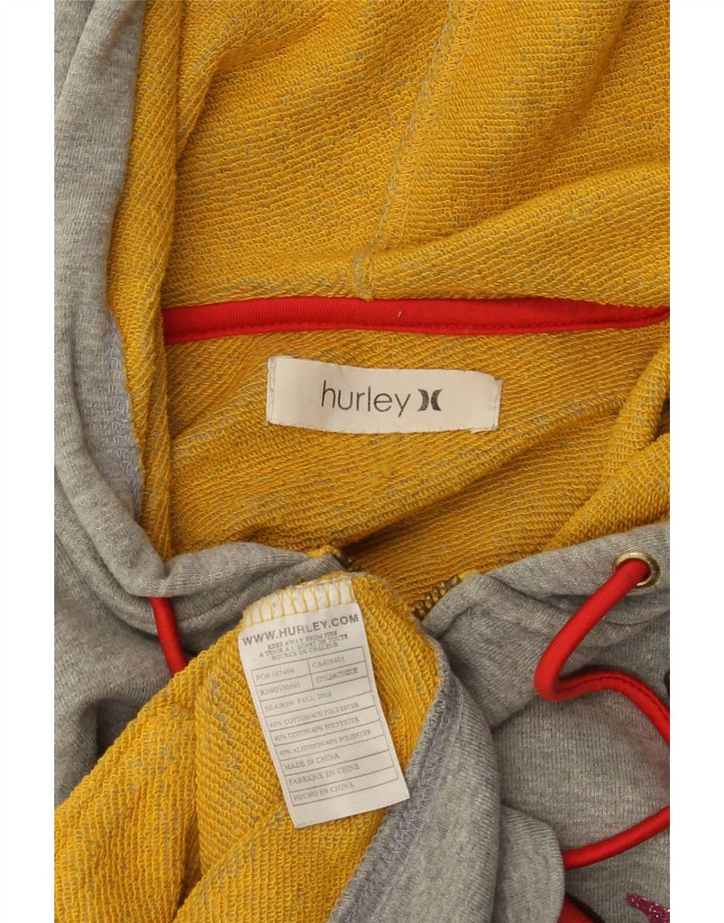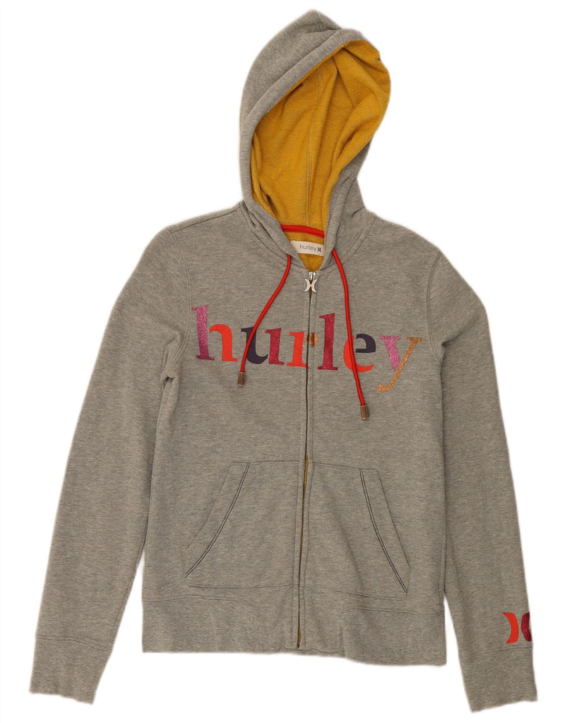 HURLEY Girls Graphic Zip Hoodie Sweater 11-12 Years Grey Cotton