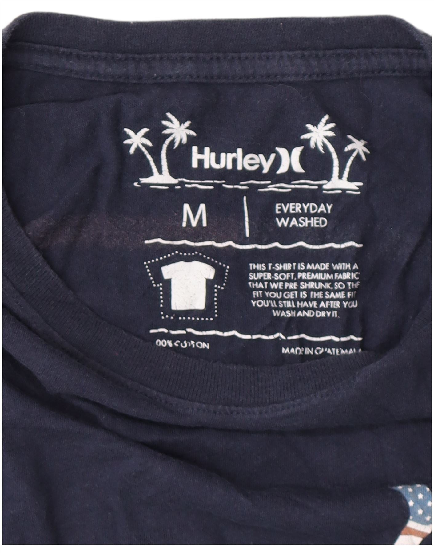 HURLEY Мужская футболка с рисунком Топ среднего размера, темно-синий, хлопок
