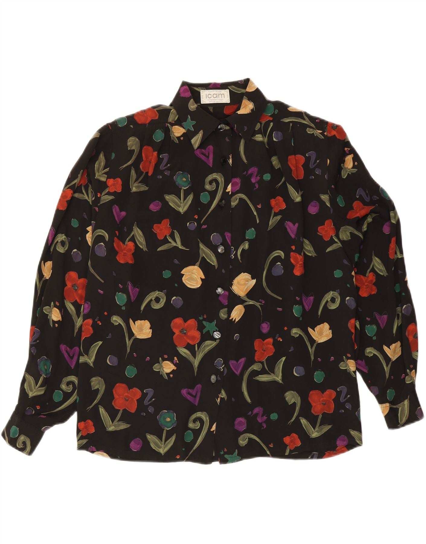 ICAM Женская блузка-рубашка IT 46, большая, черная, с цветочным принтом, ацетат