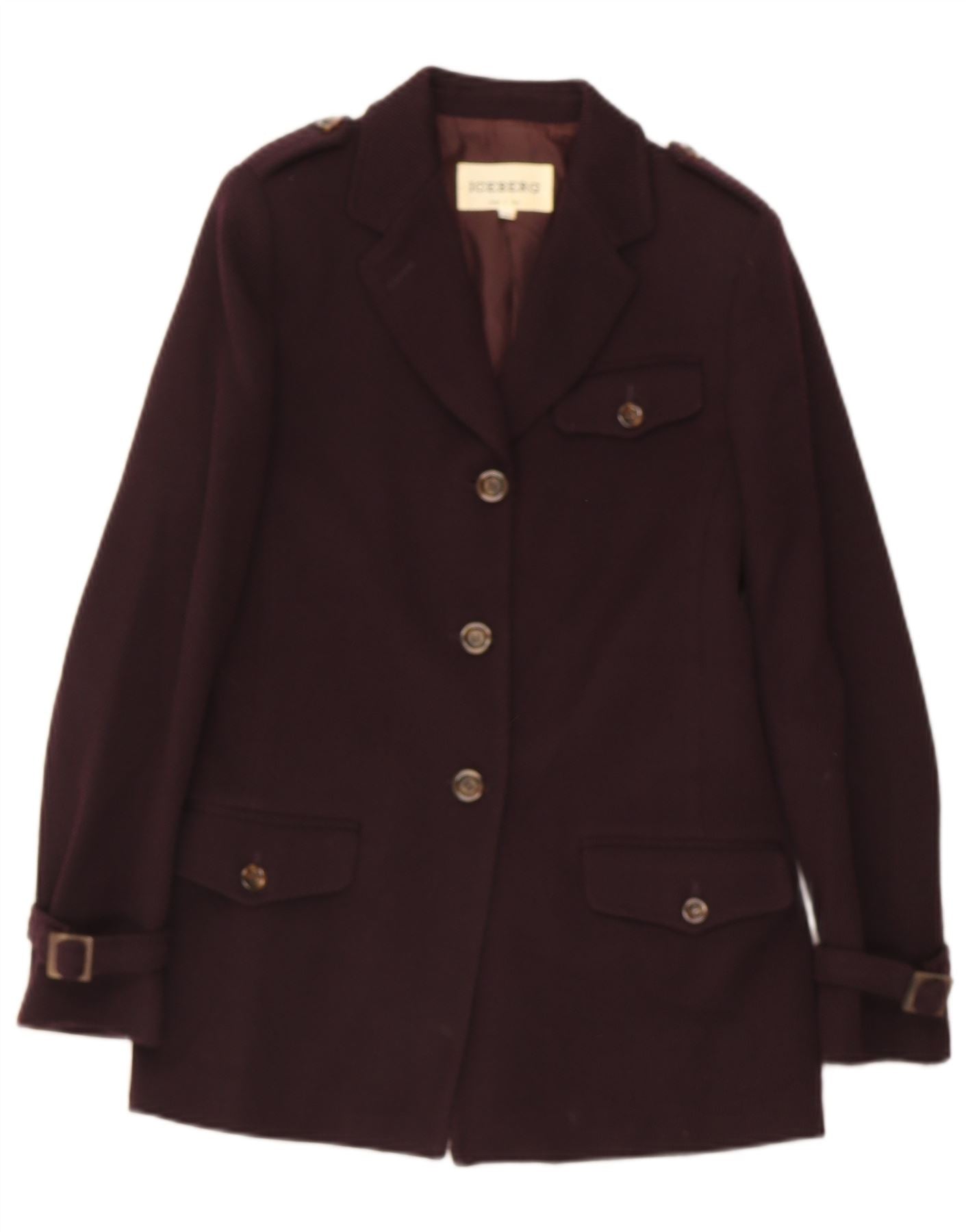 ICEBERG Womens 3 Button Military Blazer Jacket IT 44 Medium Burgundy