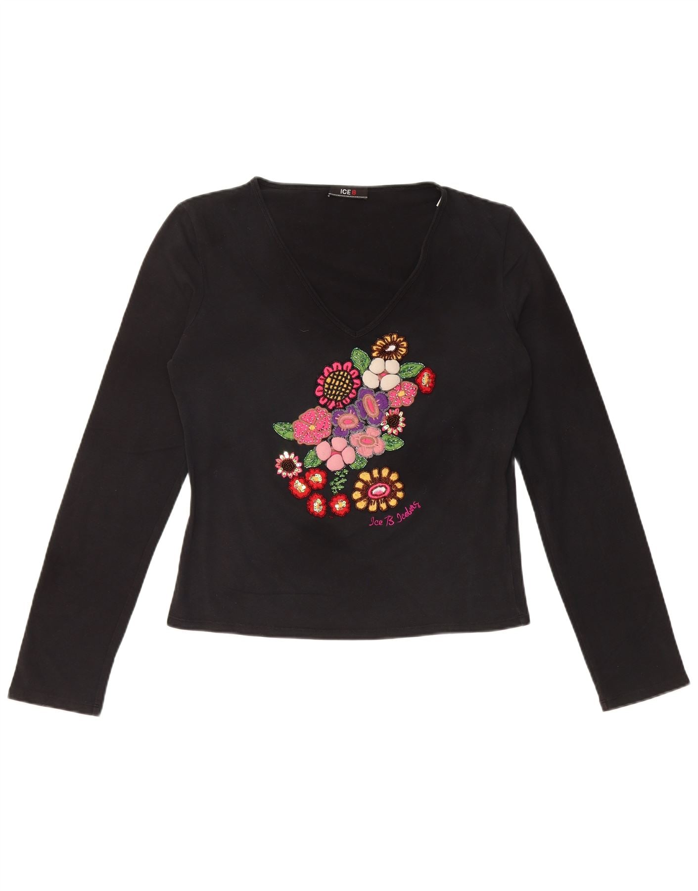 ICEBERG Женский укороченный топ с рисунком с длинным рукавом IT 46, большой черный с цветочным принтом