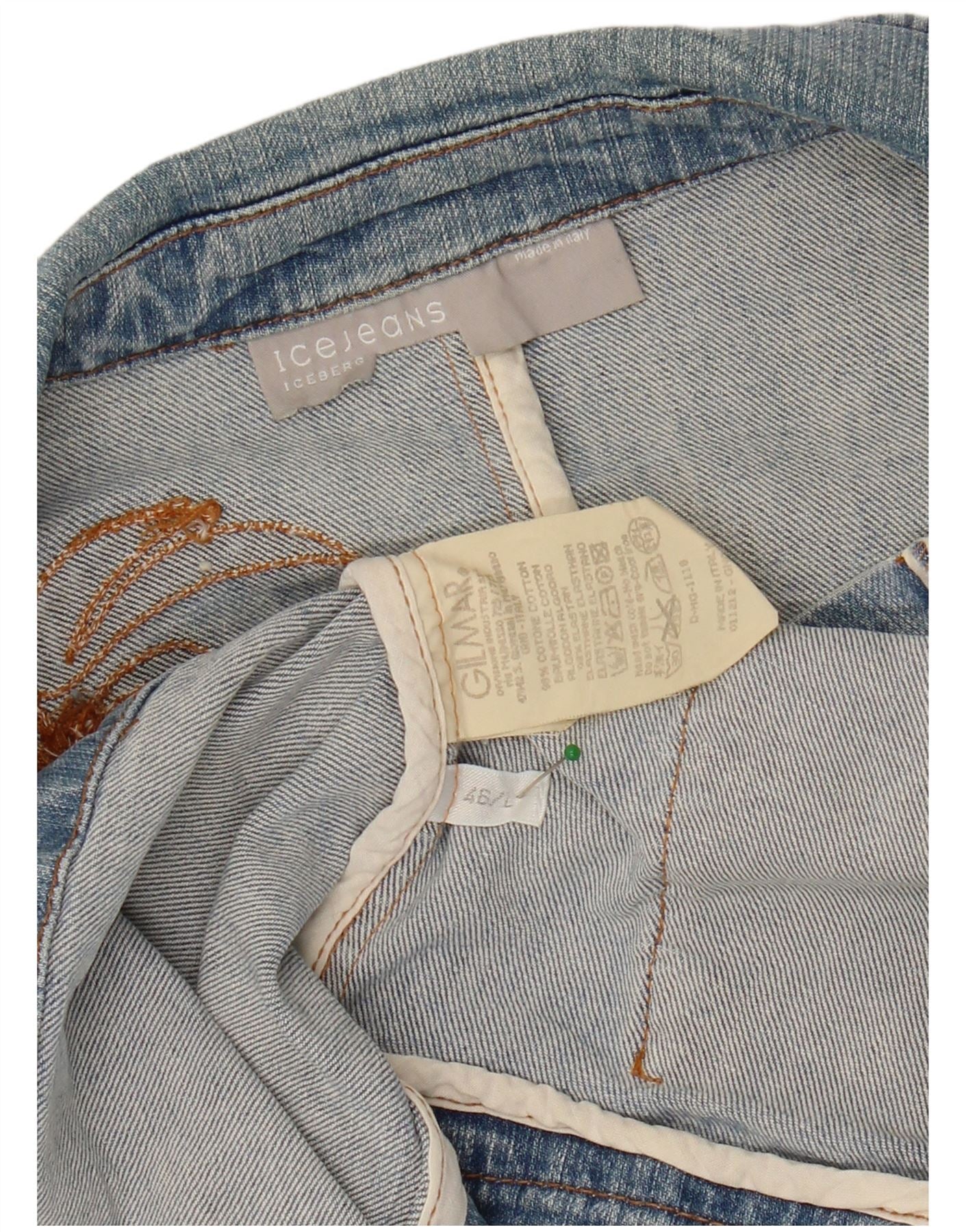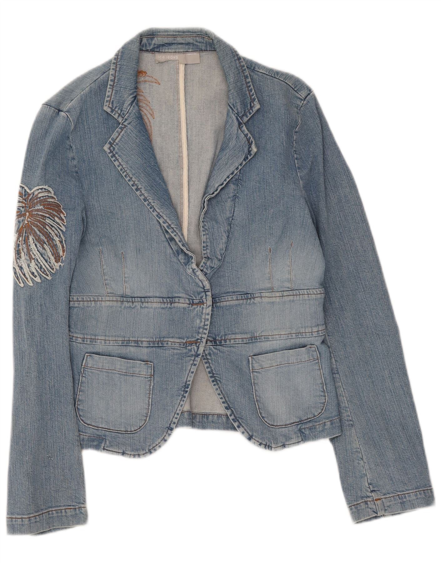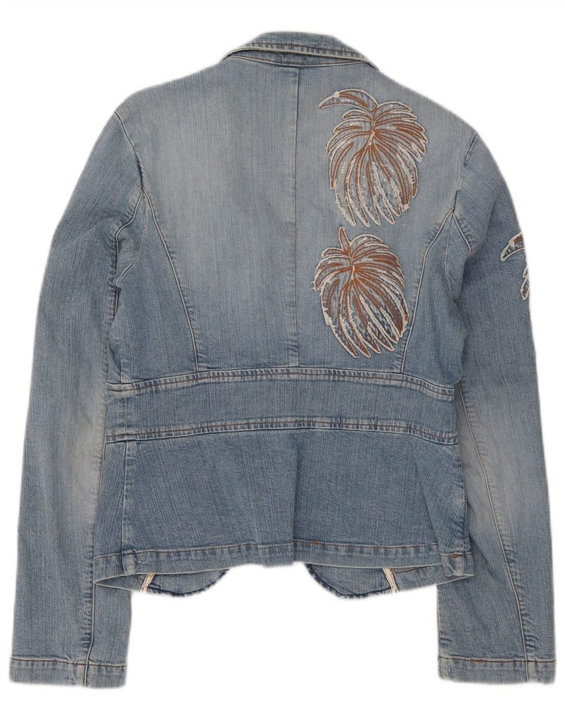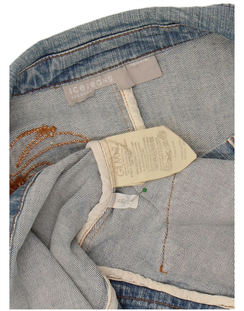 ICEBERG Womens Denim Blazer Jacket IT 46 Large Blue Floral Cotton