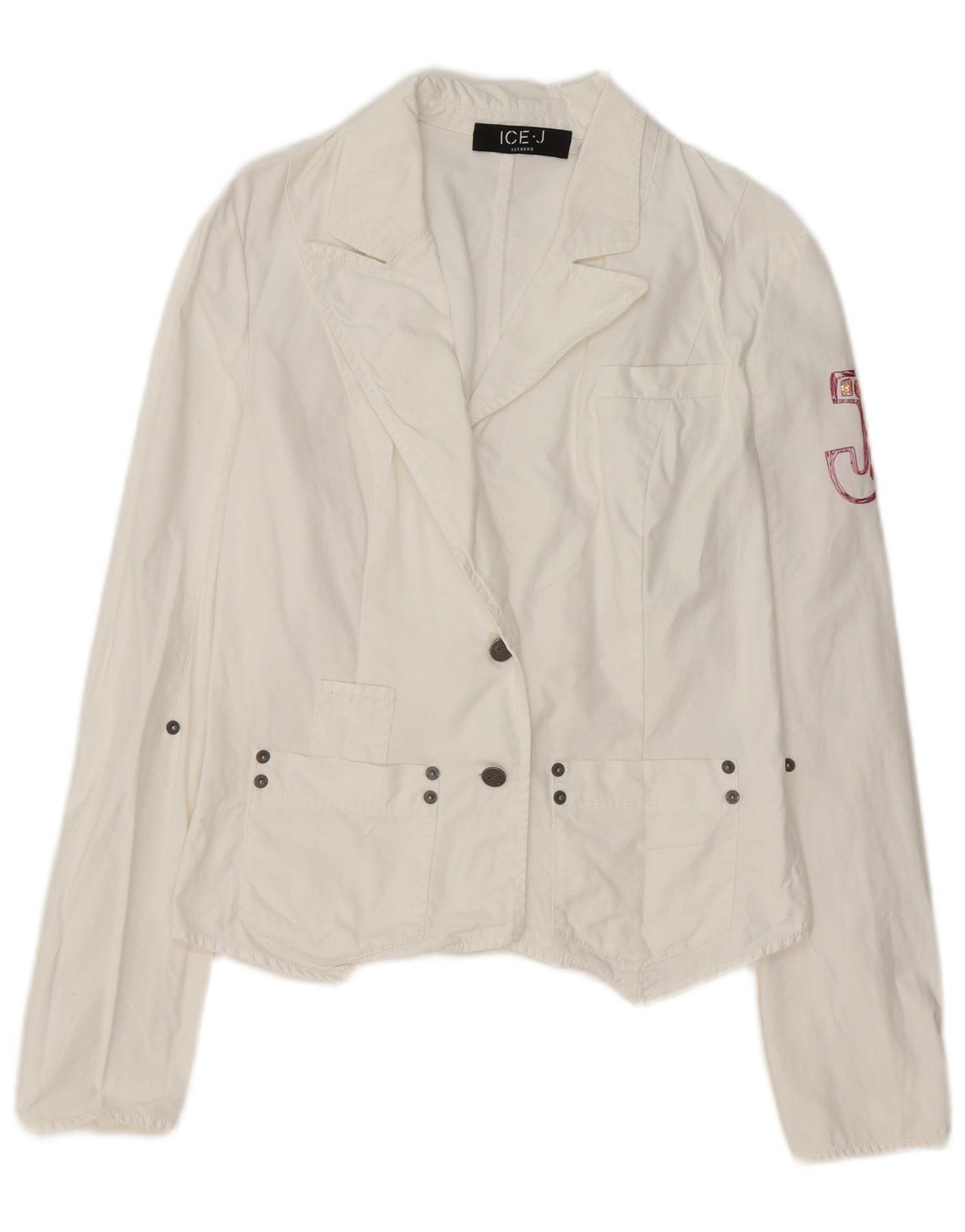 ICEBERG Womens Graphic 2 Button Blazer Jacket UK 12 Medium White