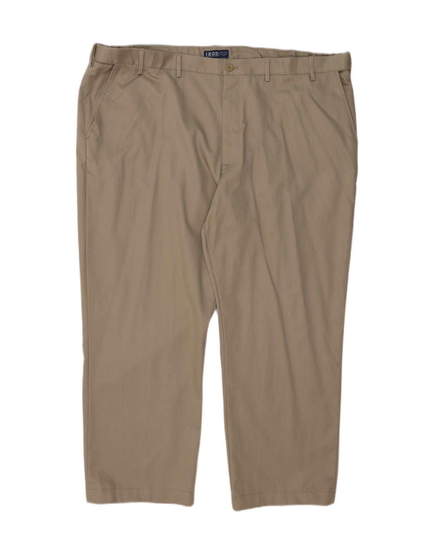 IZOD Mens Classic Fit Straight Chino Trousers W50 L30 Beige Cotton