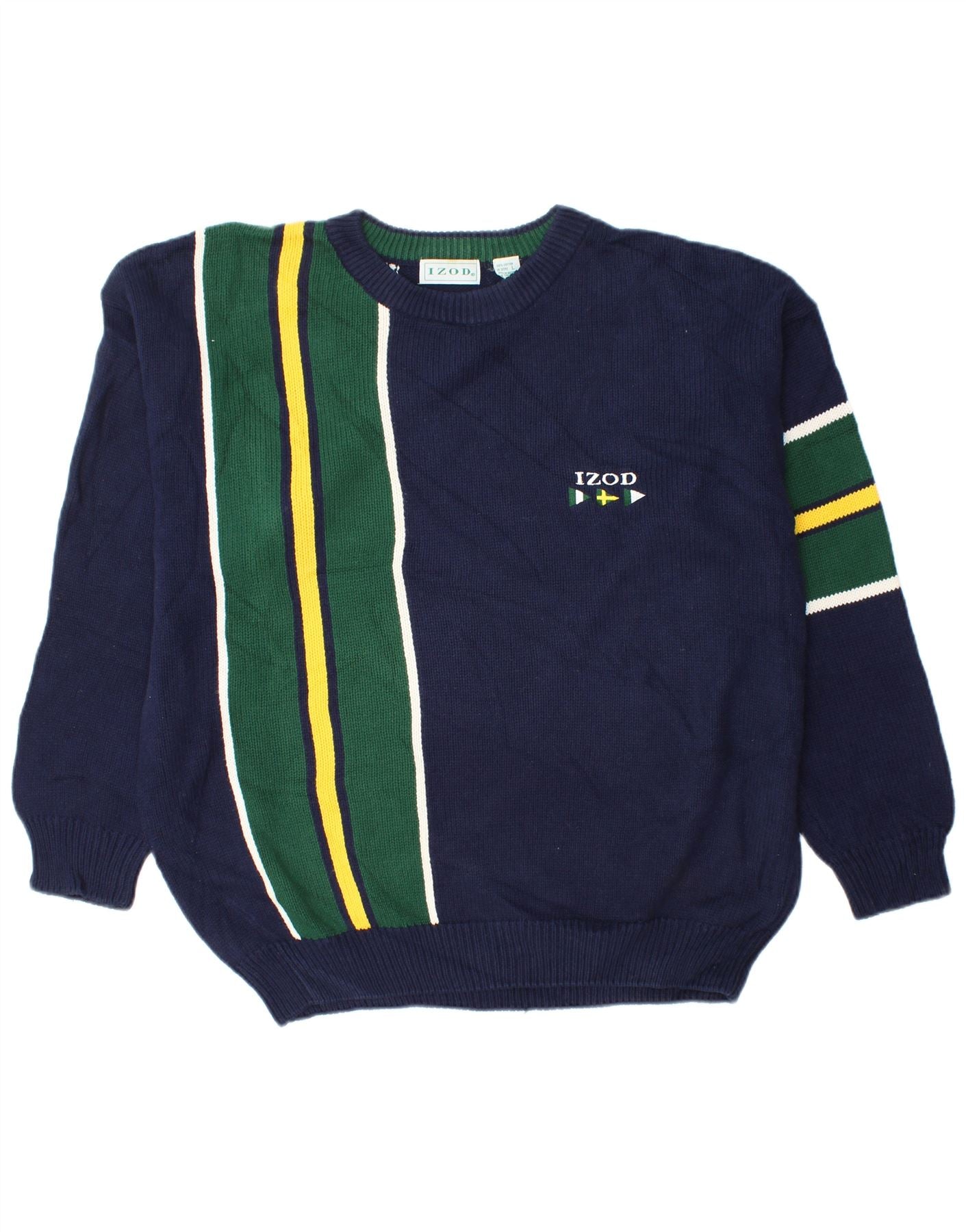 Мужской джемпер IZOD с круглым вырезом, большой темно-синий, хлопковый с цветными блоками