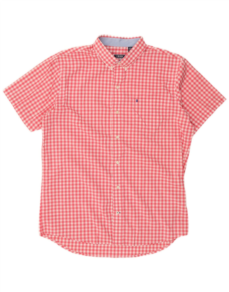 IZOD Мужская рубашка с коротким рукавом, большая хлопковая розовая клетка