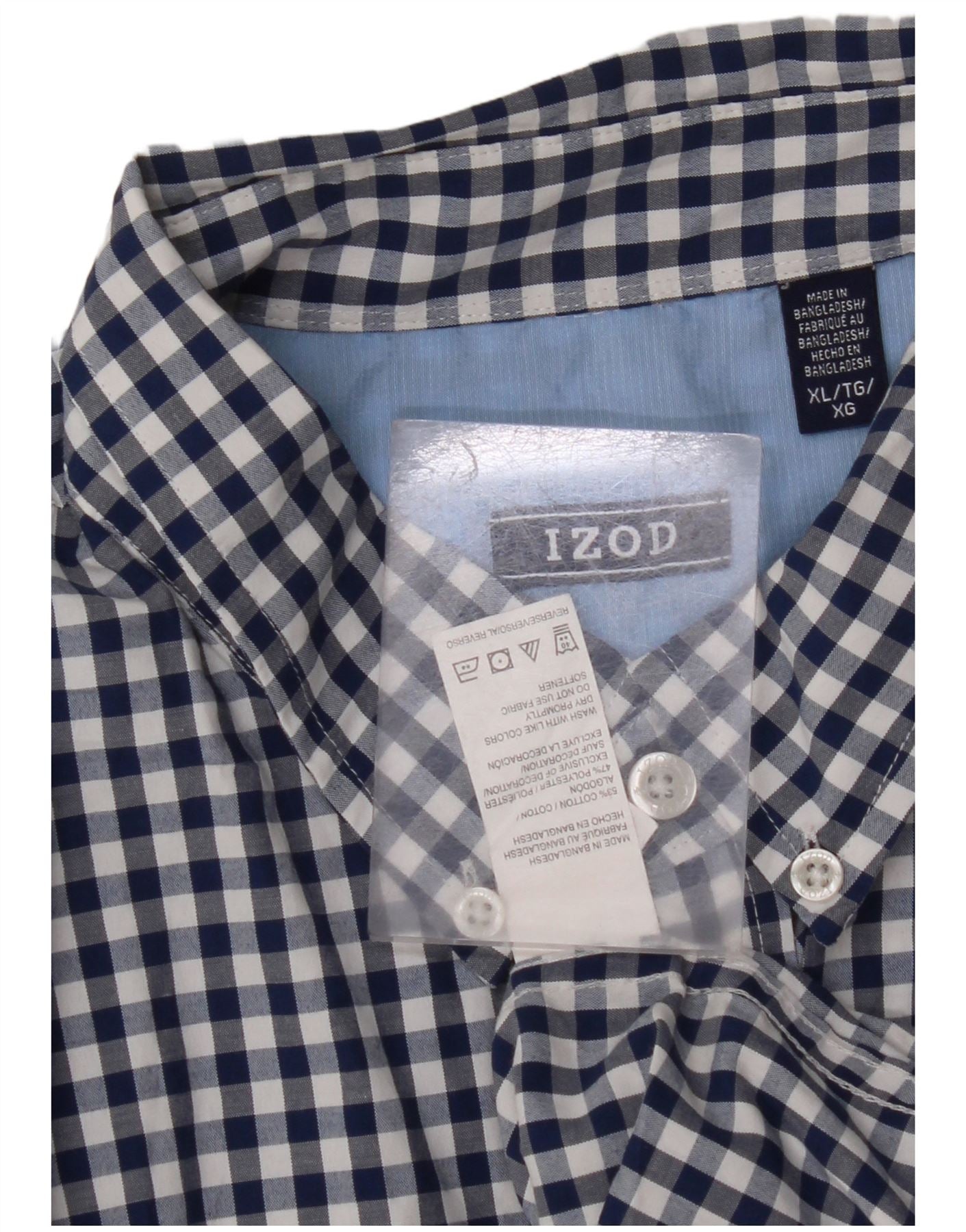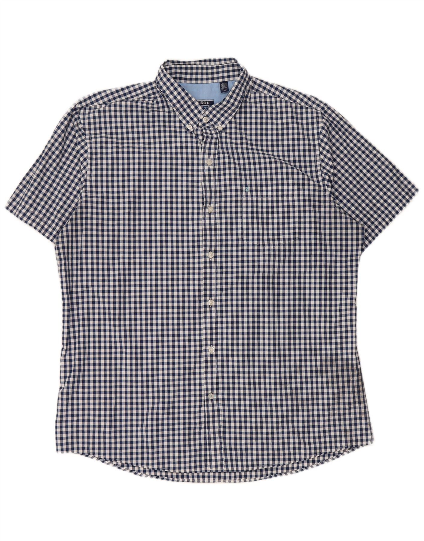 IZOD Мужская рубашка с коротким рукавом XL, синяя, хлопок в мелкую клетку