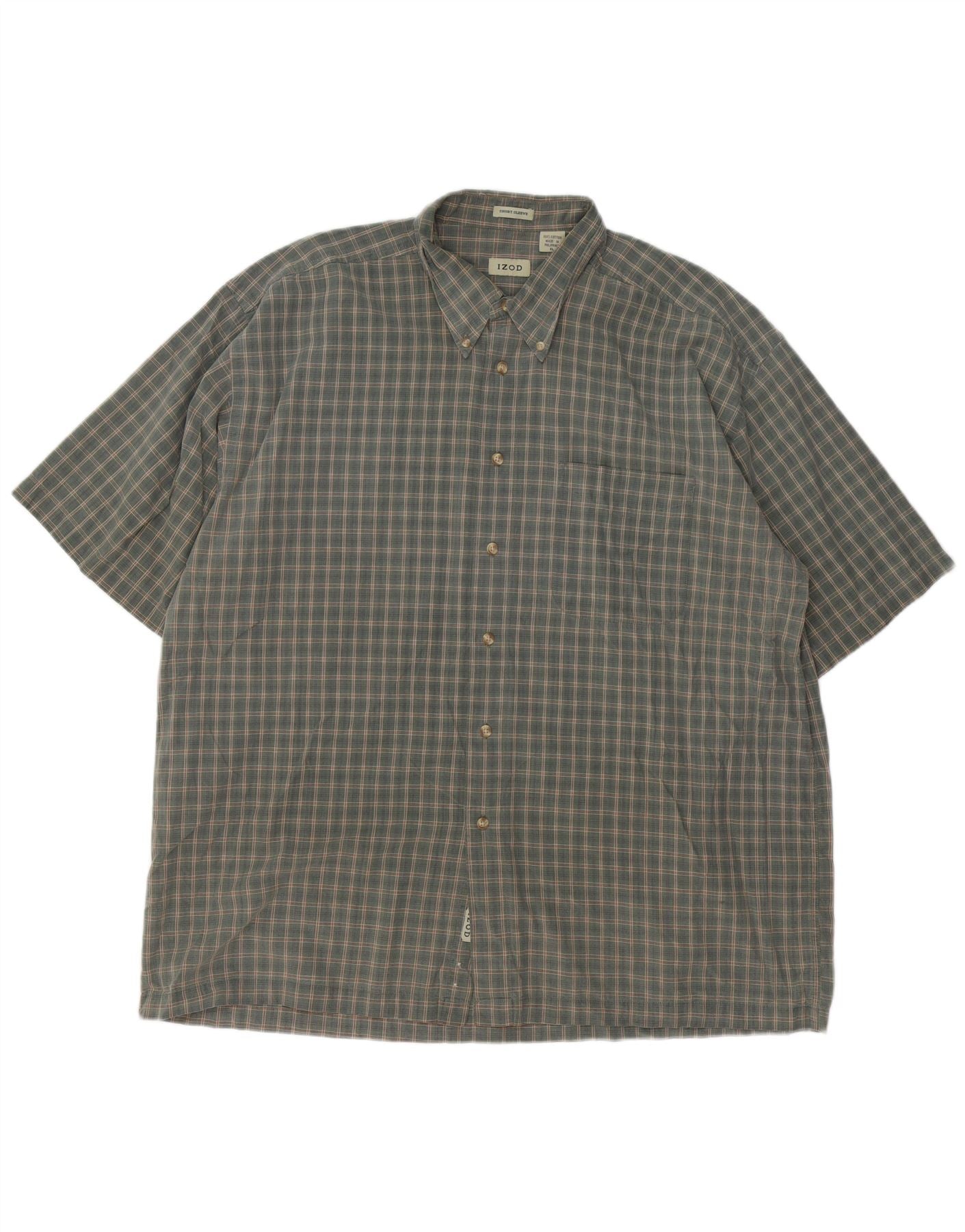 IZOD Мужская рубашка с коротким рукавом XL, цвет хаки, хлопок в клетку