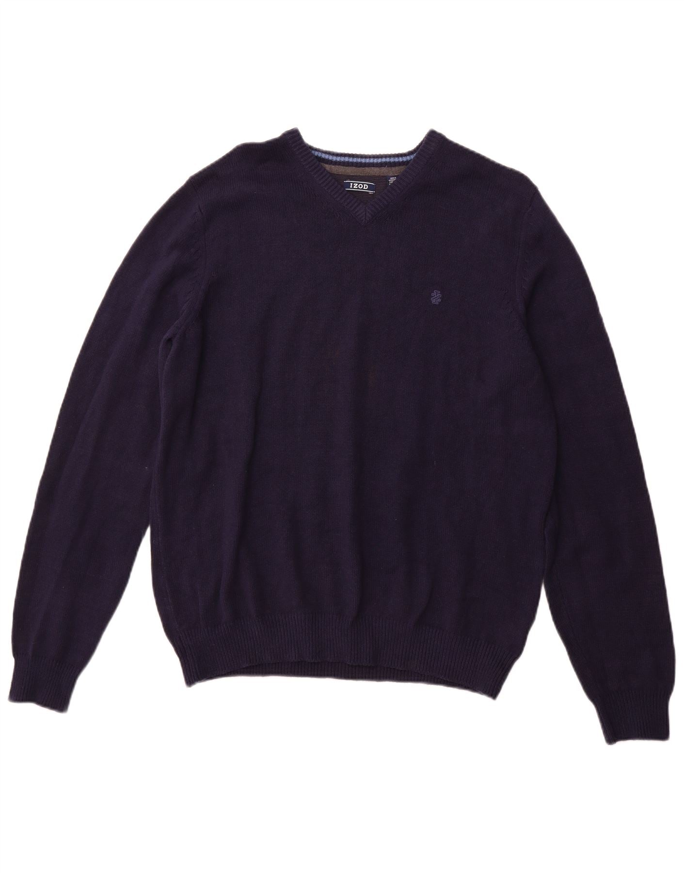 IZOD Мужской джемпер с v-образным вырезом, большой темно-синий хлопковый свитер