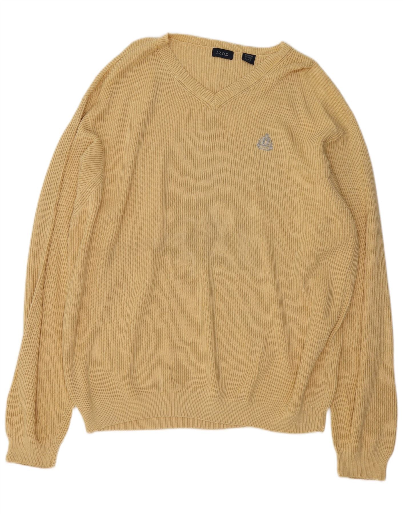 IZOD Мужской джемпер с v-образным вырезом XL, бежевый, хлопок