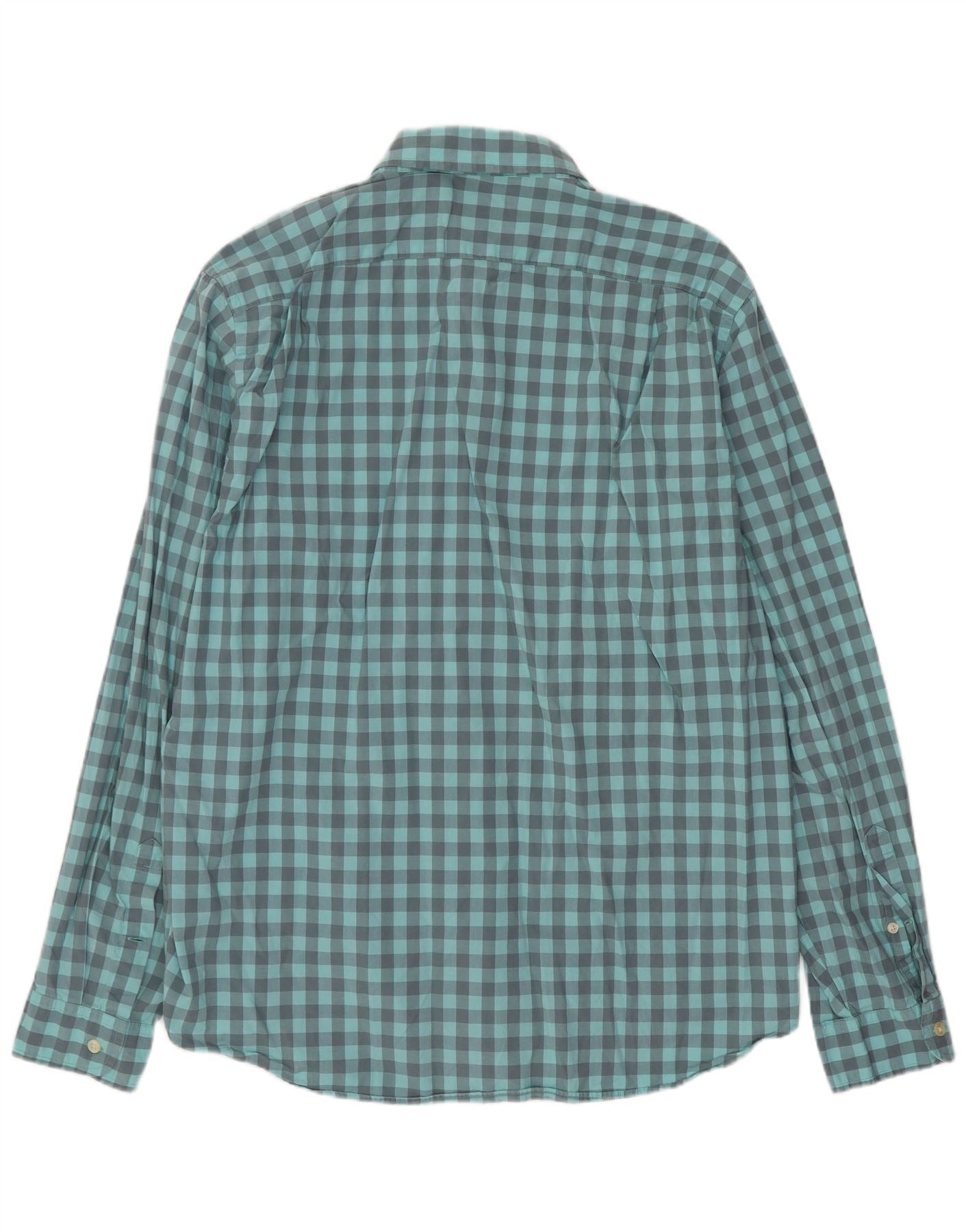 - Описание ИИ: Мужская рубашка J. Crew изготовлена из легкого 100-процентного хлопка с плотной текстурой. Он демонстрирует классический бирюзово-серый узор в клетку. Вырез с воротником и застежка на пуговицы спереди создают вневременную привлекательность. Длинные рукава и индивидуальный крой создают элегантный силуэт. Один нагрудный карман добавляет практичности этому универсальному изделию.