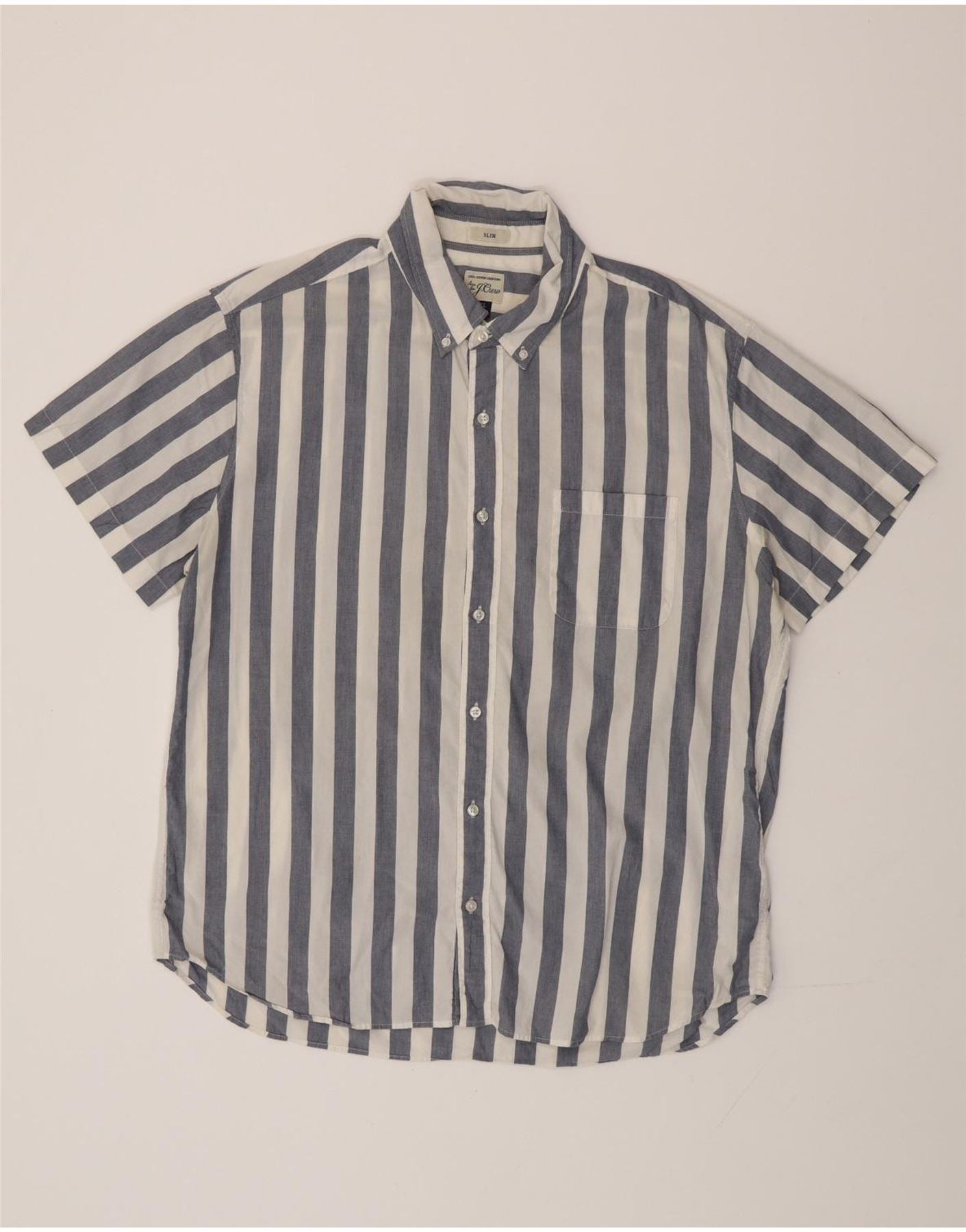 Мужская тонкая рубашка J. CREW с коротким рукавом XL, хлопковая синяя полоска