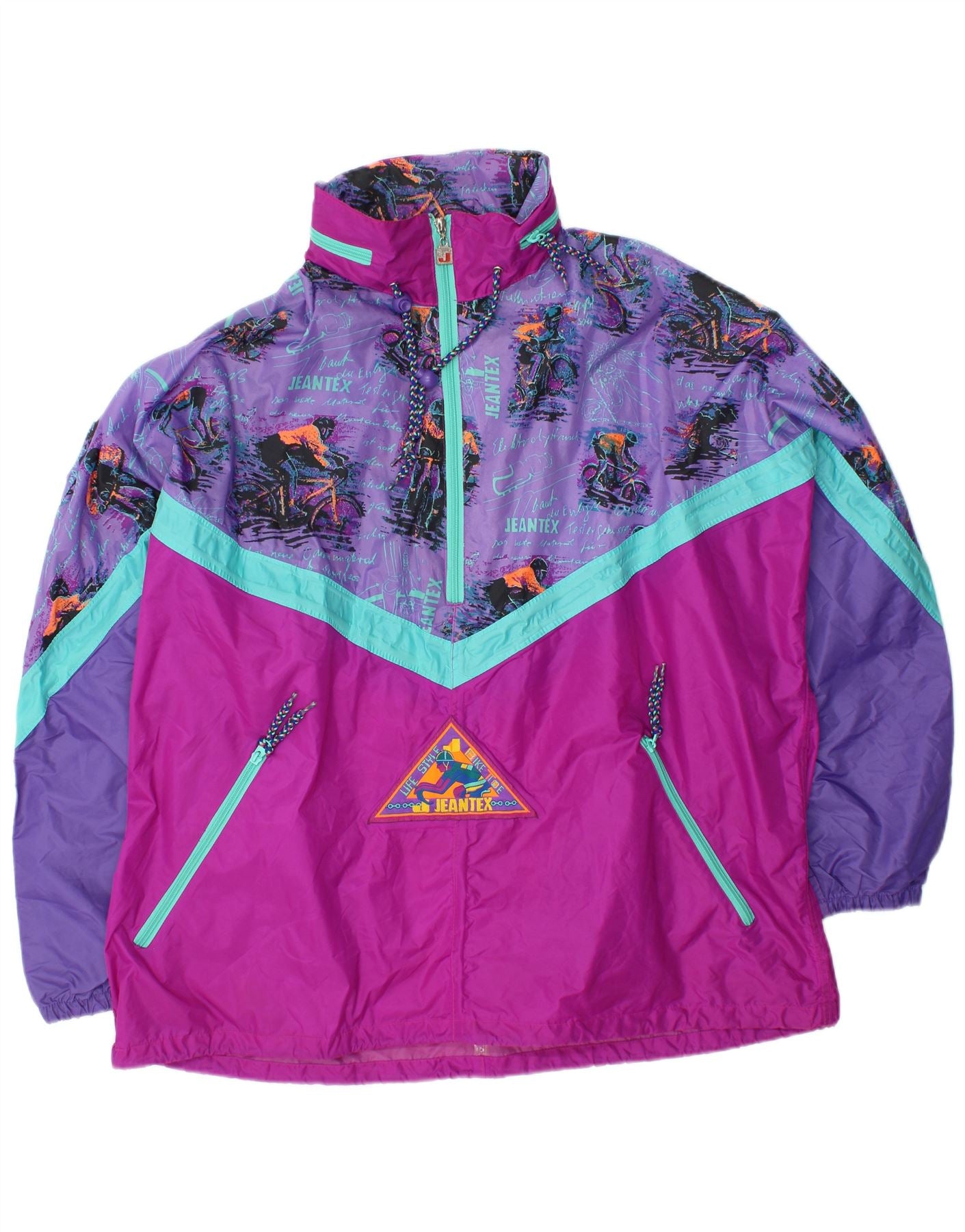 Мужской пуловер от дождя J JEANTEX с капюшоном, Великобритания, 44/46, 2XL, фиолетовый, с цветными блоками