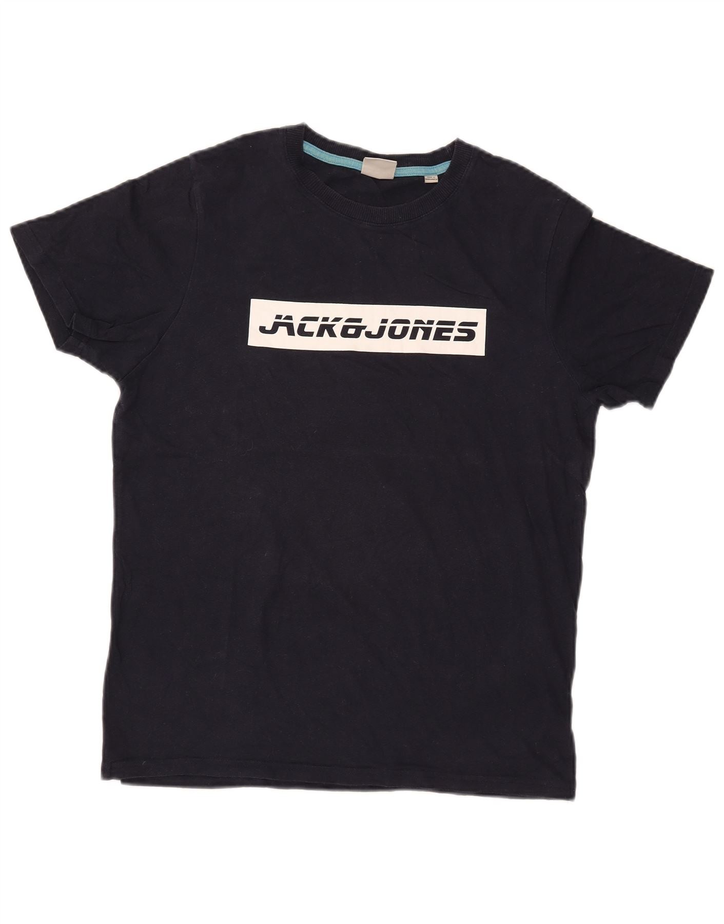 Мужская футболка с рисунком JACK & JONES, топ среднего размера, темно-синий, хлопок