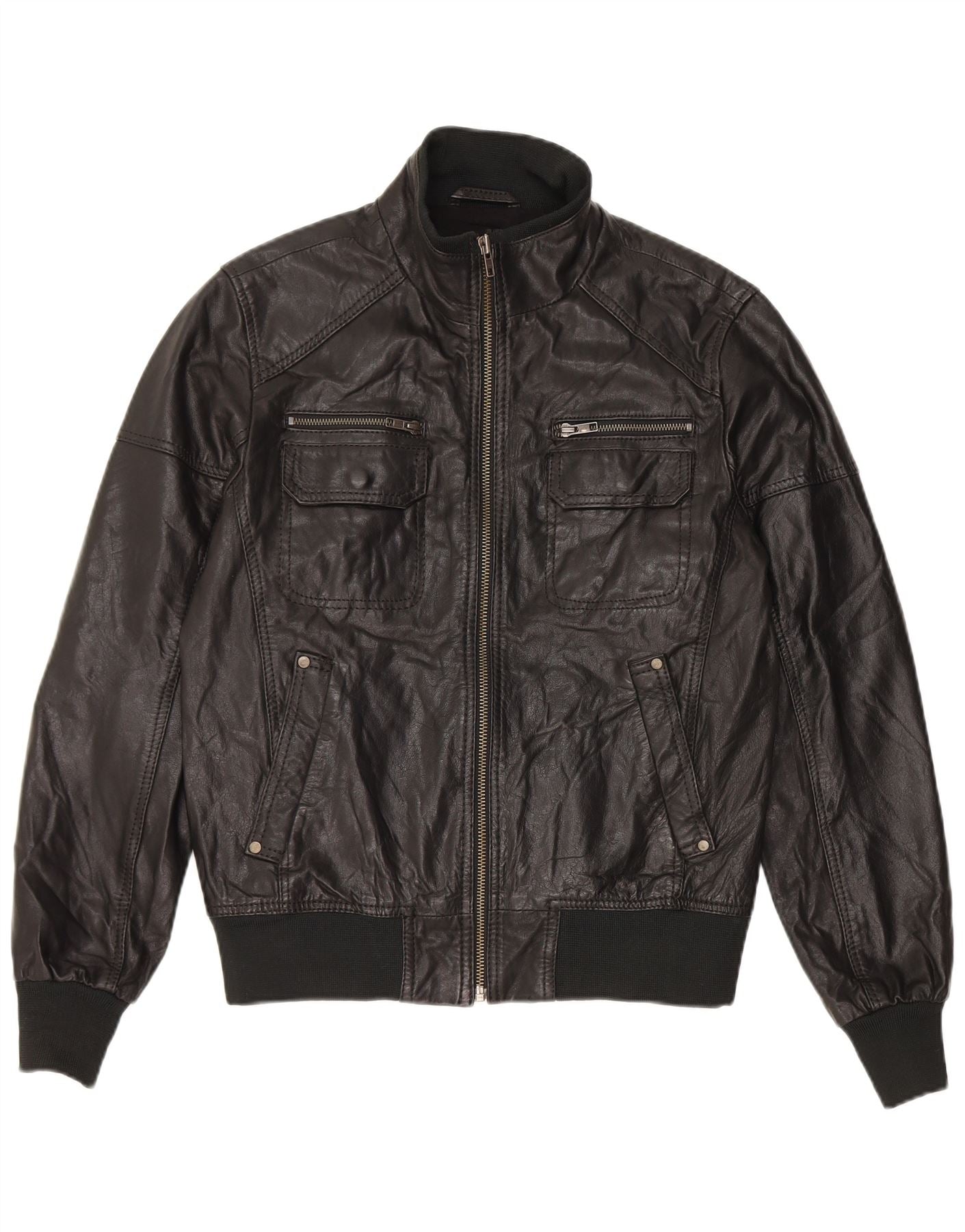 Мужская кожаная куртка-бомбер Jack & Jones UK 36 маленькая черная кожа
