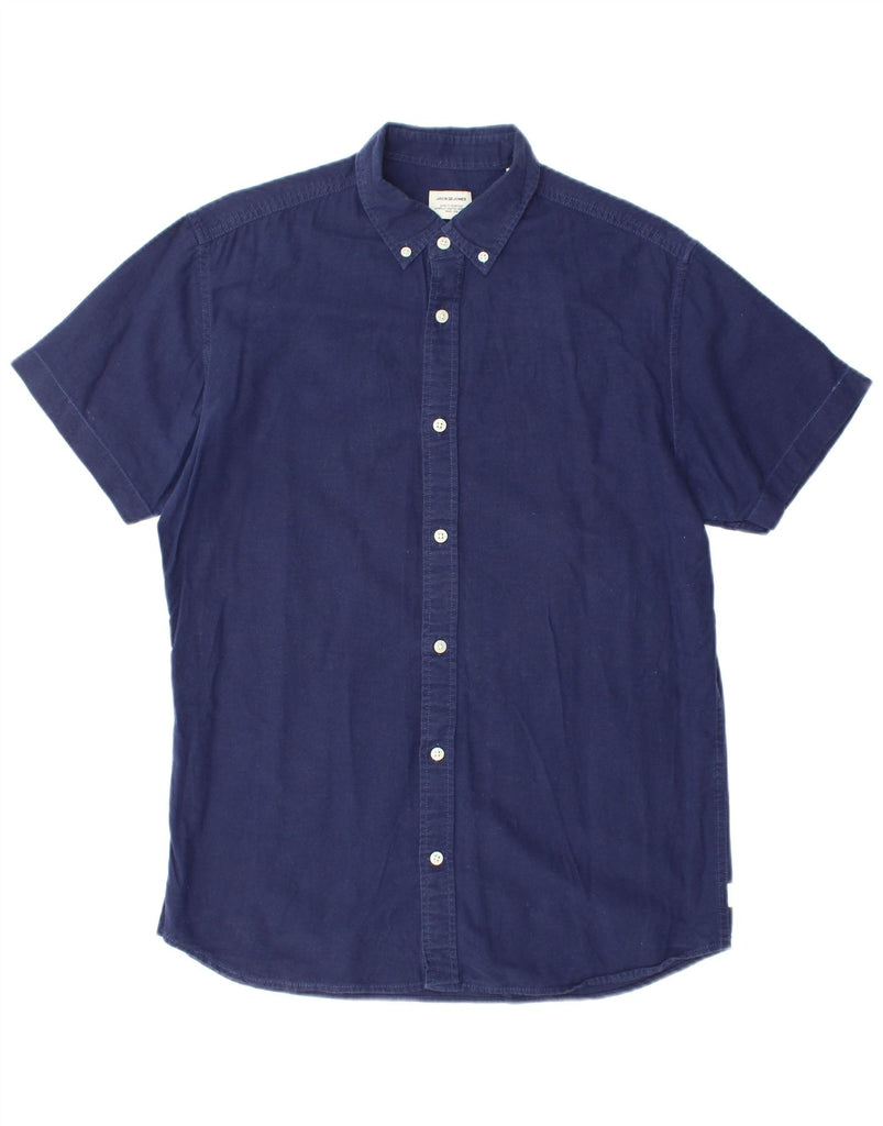 JACK & JONES Мужская рубашка с коротким рукавом среднего темно-синего цвета