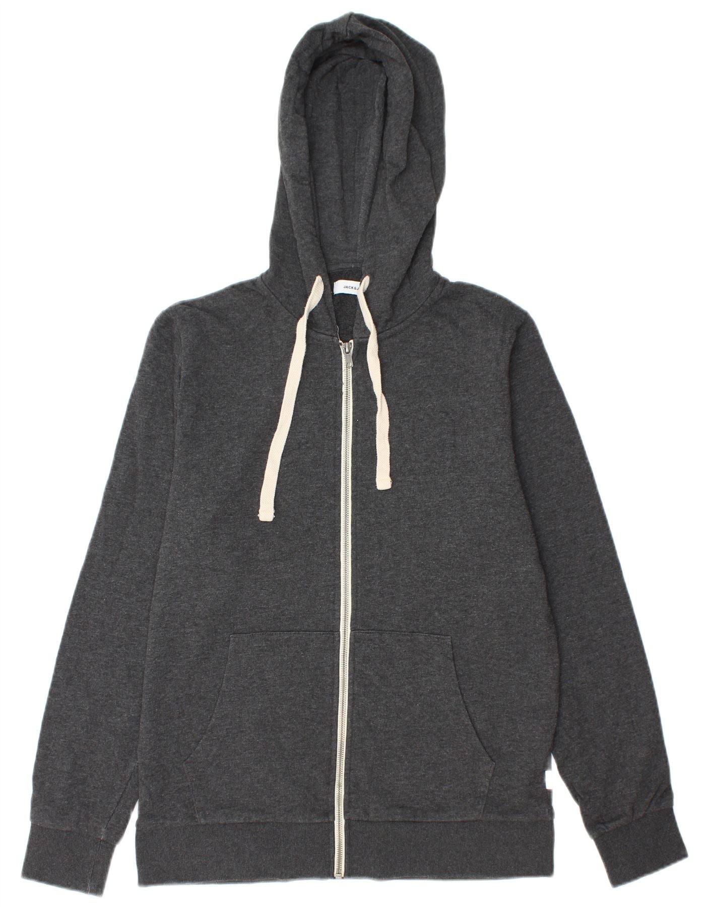 JACK & JONES Мужской свитер с капюшоном на молнии среднего серого цвета, хлопок