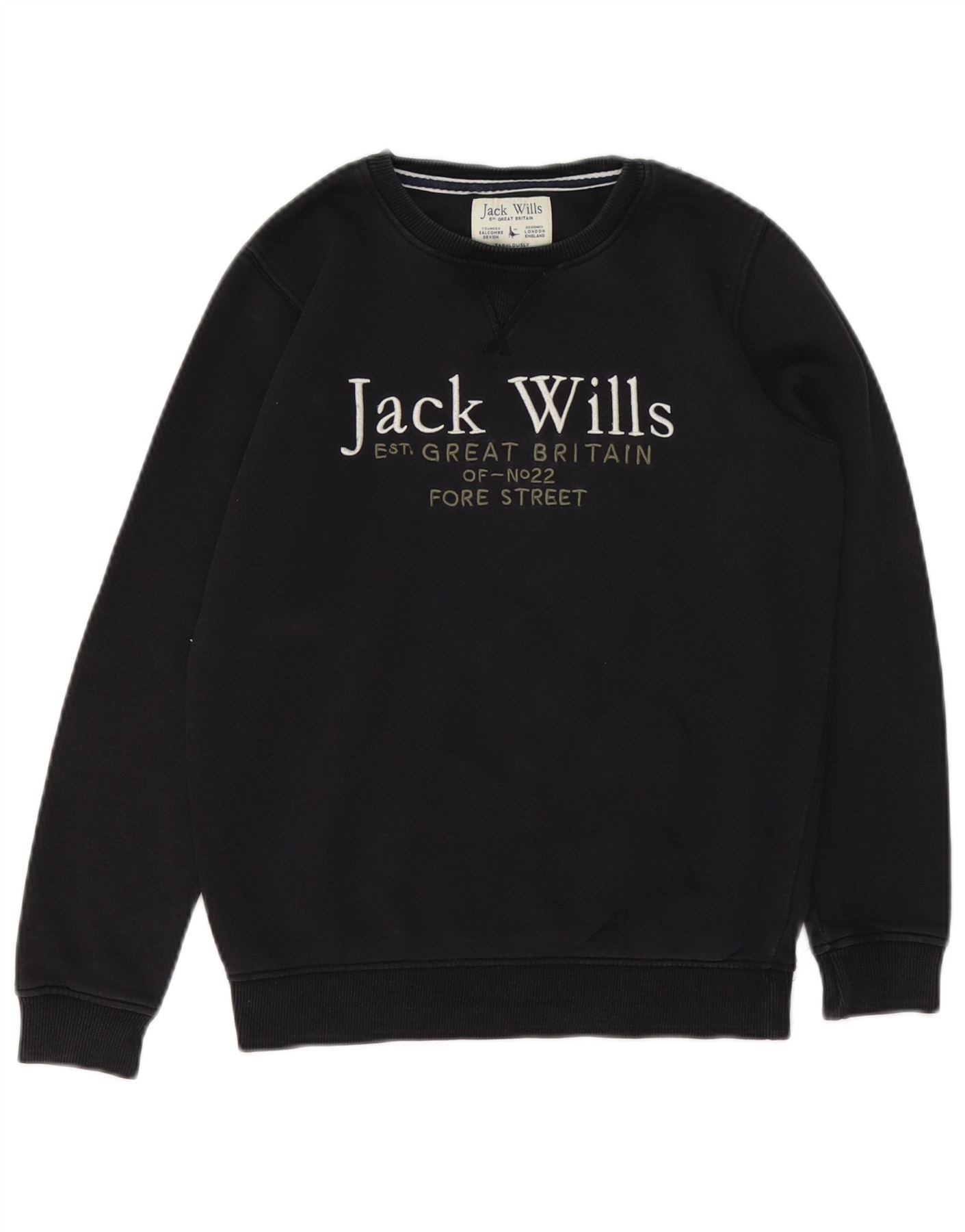 JACK WILLS Boys Graphic Sweatshirt Jumper 10-11 Years Black Cotton