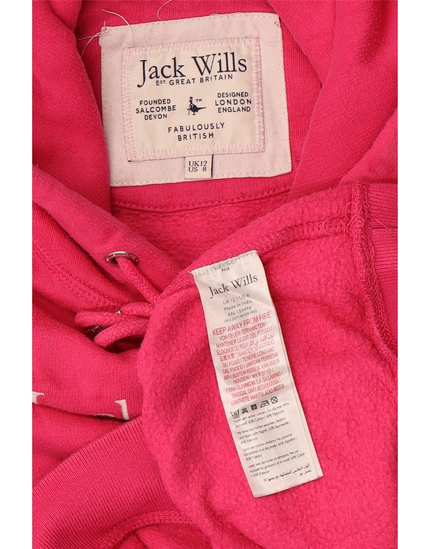 Женский укороченный джемпер с капюшоном JACK WILLS UK 12, средний розовый