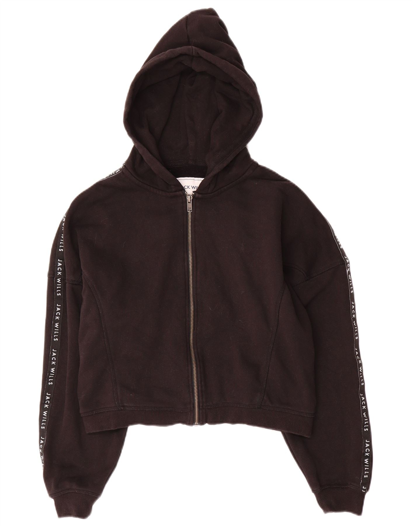 JACK WILLS Женский укороченный свитер с капюшоном на молнии большого размера UK 10, маленький черный