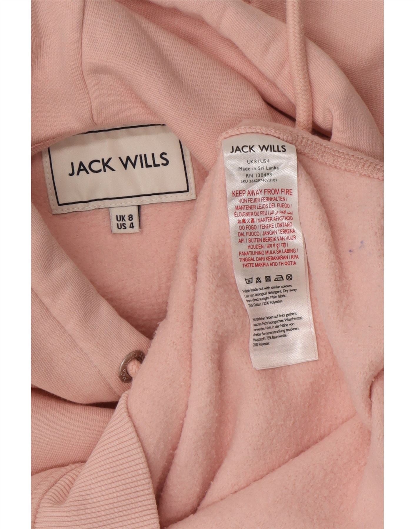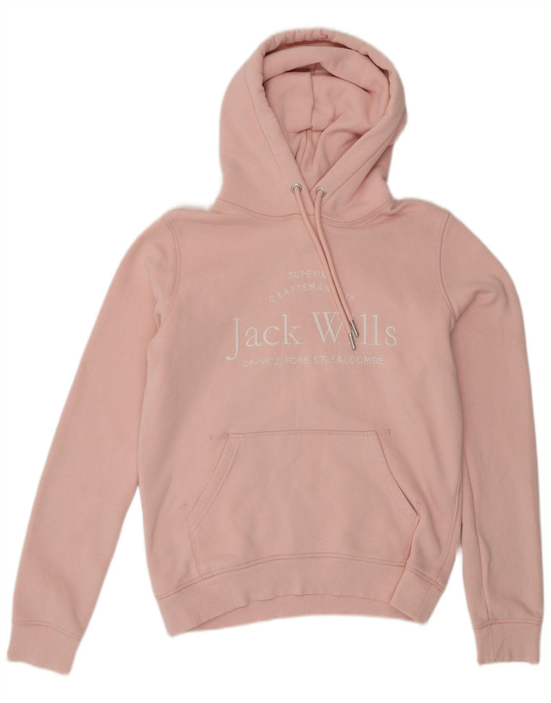 JACK WILLS Womens Oversized Graphic Hoodie Jumper UK 8 Small Pink Cotton