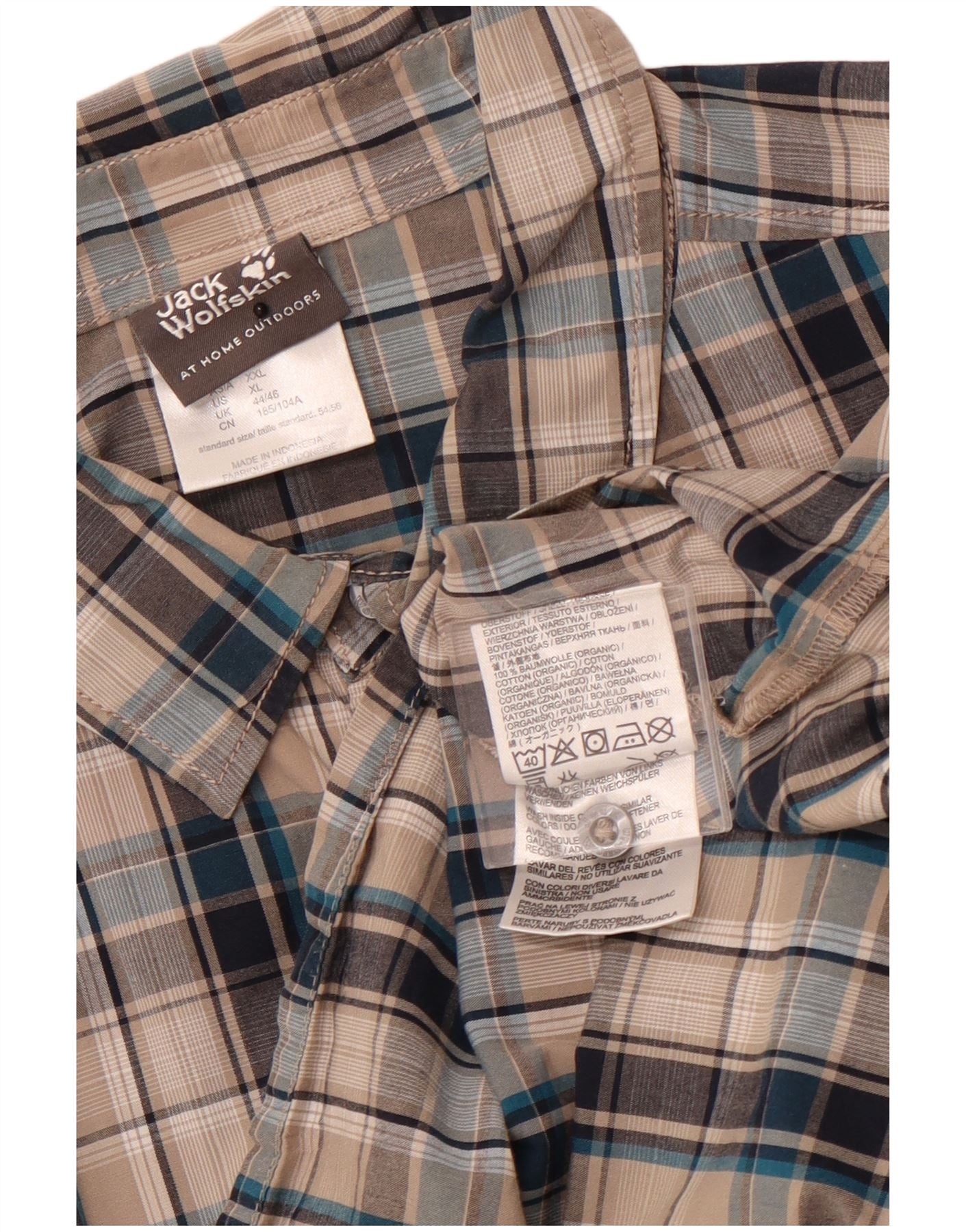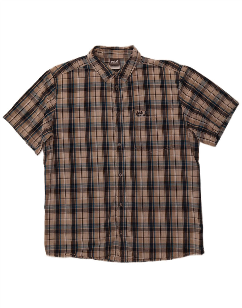 JACK WOLFSKIN Мужская рубашка с коротким рукавом, размер 44/46 XL, серая клетка, хлопок