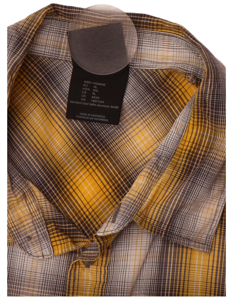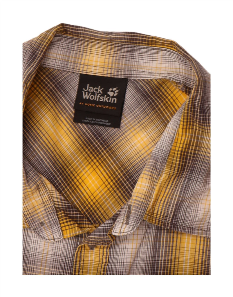 JACK WOLFSKIN Mens Short Sleeve Shirt UK 44/46 XL Yellow Check Cotton