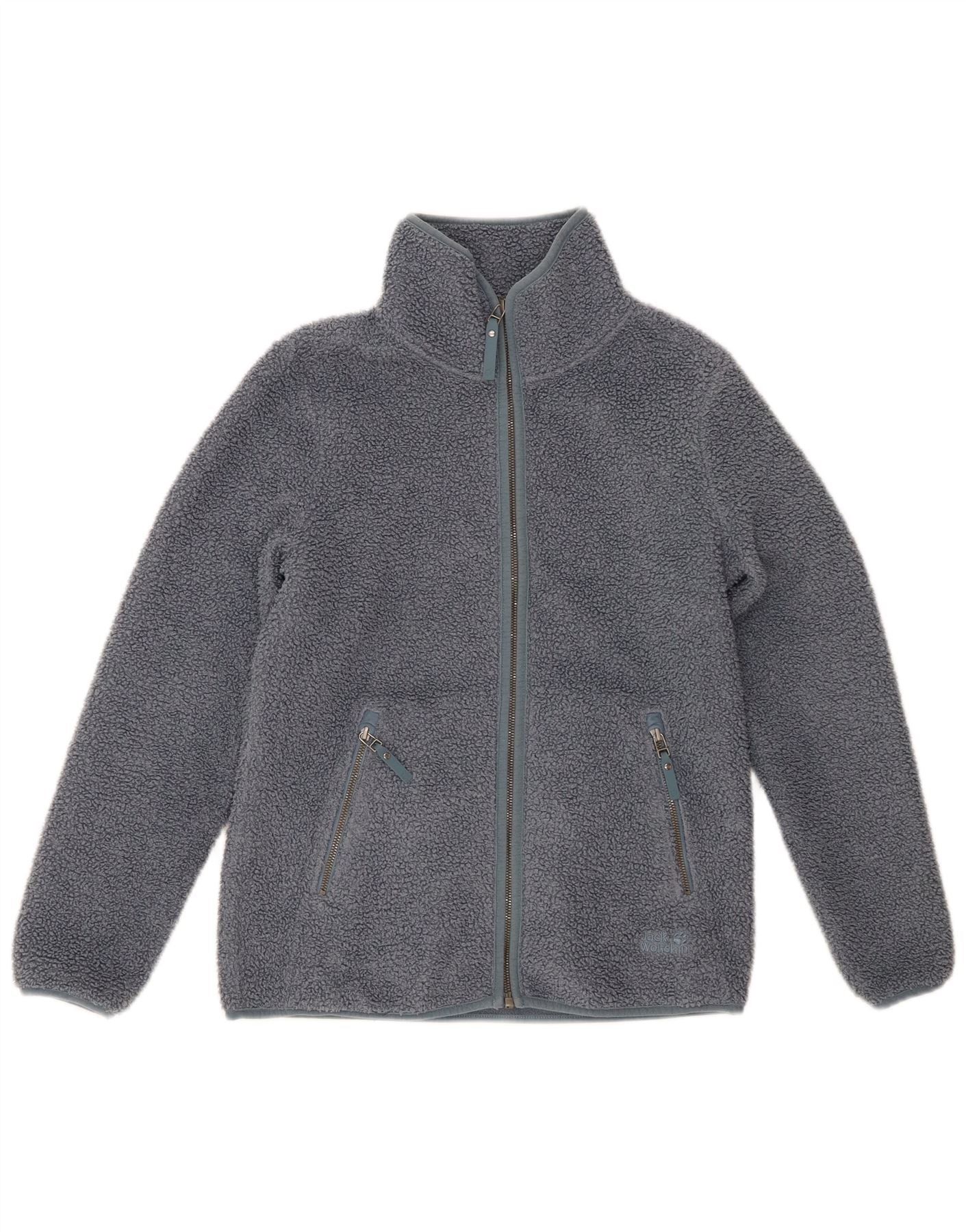 JACK WOLFSKIN Womens Oversized Fleece Jacket UK 8/10 Small Grey Polyester