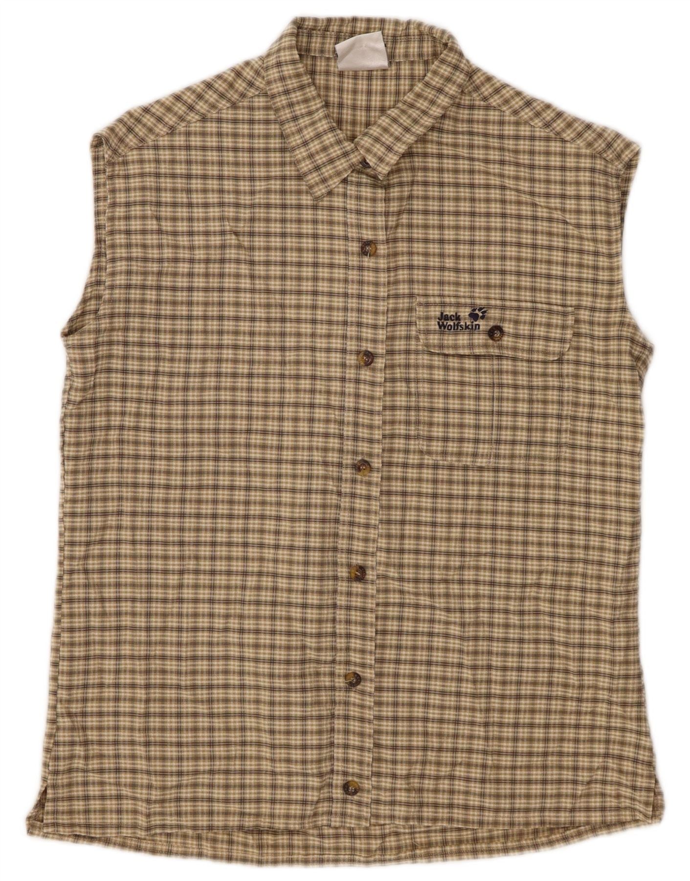 Home > Женский > Депоп Одежда > Женская рубашка без рукавов JACK WOLFSKIN UK 10, маленькая, бежевая клетка, полиэстер