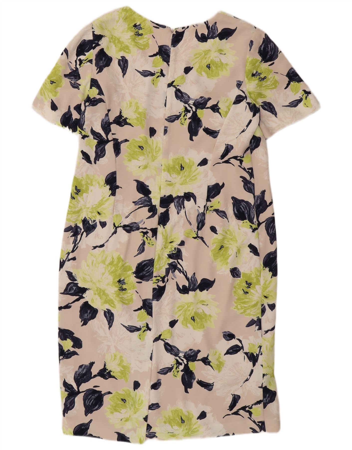 JACQUES VERT Женское платье-футляр с короткими рукавами UK 12 Средний Бежевый Цветочный