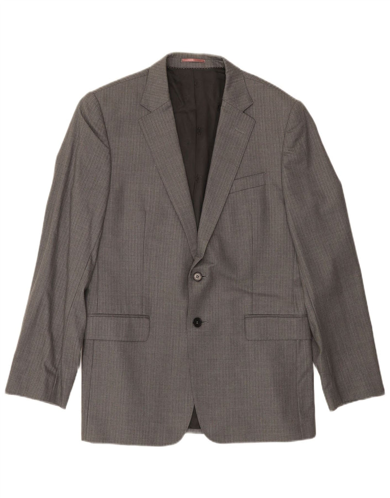JAEGER Mens 2 Button Blazer Jacket UK 40 Large Grey Pinstripe Wool